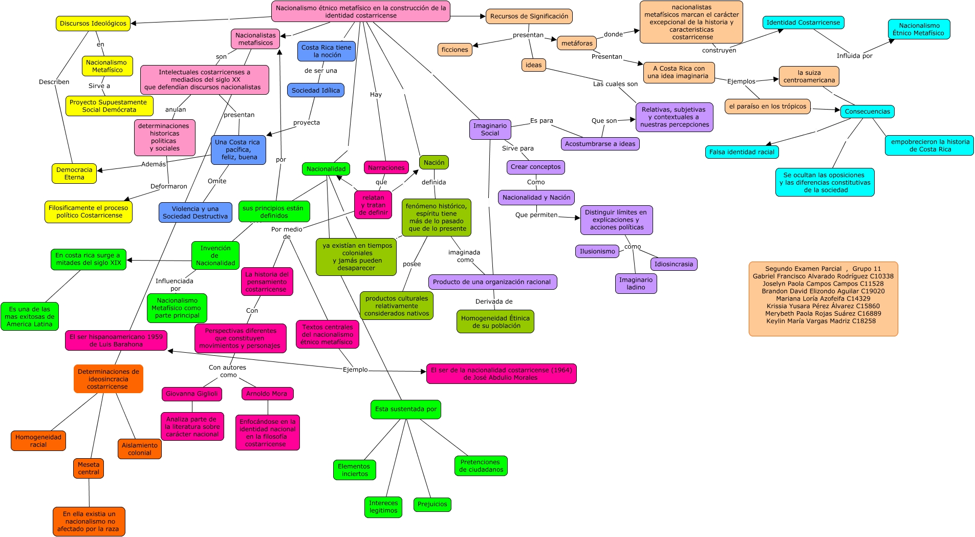 Este Cmap, tiene información relacionada con: parcial filo 3.0, Consecuencias empobrecieron la historia de Costa Rica, Discursos Ideológicos en Nacionalismo Metafísico, Determinaciones de ideosincracia costarricense ???? Homogeneidad racial, Perspectivas diferentes que constituyen movimientos y personajes Con autores como Arnoldo Mora, relatan y tratan de definir Por medio de La historia del pensamiento costarricense, Sociedad Idílica proyecta Una Costa rica pacífica, feliz, buena, el paraíso en los trópicos Consecuencias, Narraciones que relatan y tratan de definir, Distinguir límites en explicaciones y acciones políticas como Imaginario ladino, Acostumbrarse a ideas Que son Relativas, subjetivas y contextuales a nuestras percepciones, Imaginario Social Es para Acostumbrarse a ideas, Nación definida fenómeno histórico, espíritu tiene más de lo pasado que de lo presente, Nacionalidad sus principios están definidos, La historia del pensamiento costarricense Con Perspectivas diferentes que constituyen movimientos y personajes, determinaciones historicas politicas y sociales Deformaron Filosificamente el proceso político Costarricense, Nacionalismo étnico metafísico en la construcción de la identidad costarricense Nacionalidad, Nacionalismo étnico metafísico en la construcción de la identidad costarricense ???? Recursos de Significación, Esta sustentada por ???? Intereces legitimos, A Costa Rica con una idea imaginaria Ejemplos la suiza centroamericana, Nacionalidad ???? Esta sustentada por