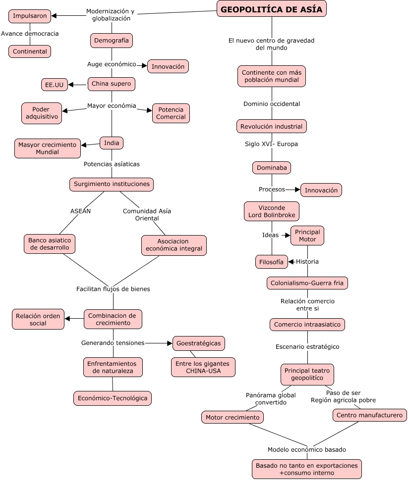 Este Cmap, tiene información relacionada con: ambiente, Comercio intraasiatico Escenario estratégico Principal teatro geopolitíco, China supero Mayor económia India, Principal Motor Historia Filosofía, Impulsaron Avance democracia Continental, Colonialismo-Guerra fria Relación comercio entre si Comercio intraasiatico, Combinacion de crecimiento Generando tensiones Goestratégicas, Enfrentamientos de naturaleza ???? Económico-Tecnológica, China supero ???? EE.UU, Dominaba Procesos Vizconde Lord Bolinbroke, Combinacion de crecimiento Generando tensiones Enfrentamientos de naturaleza, GEOPOLITÍCA DE ASÍA El nuevo centro de gravedad del mundo Continente con más población mundial, Centro manufacturero Modelo económico basado Basado no tanto en exportaciones +consumo interno, Principal teatro geopolitíco Panórama global convertido Motor crecimiento, China supero Mayor económia Potencia Comercial, Asociacion económica integral Facilitan flujos de bienes Combinacion de crecimiento, Goestratégicas ???? Entre los gigantes CHINA-USA, Combinacion de crecimiento ???? Relación orden social, GEOPOLITÍCA DE ASÍA Modernización y globalización Impulsaron, Vizconde Lord Bolinbroke Ideas Principal Motor, India ???? Masyor crecimiento Mundial