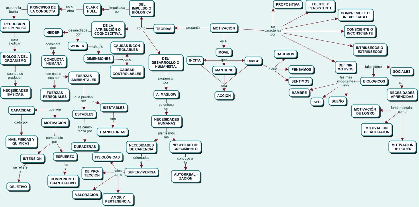 Este Cmap, tiene información relacionada con: MPA-MOTIVACIÓN, MOVIL que INCITA, MOTIVACIÓN se caracteriza por FUERTE Y PERSISTENTE, MOTIVACIÓN compuesto por ESFUERZO, WEINER añadió DIMENSIONES, CONDUCTA HUMANA son causa- das por FUERZAS AMBIENTALES, MOTIVACIÓN se caracteriza por INTRINSECOS O EXTRINSECOS, ESTABLES se carac- teriza por DURADERAS, CAPACIDAD dada por HAB. FISICAS Y QUIMICAS., DIRIGE lo que PENSAMOS, CONDUCTA HUMANA son causa- das por FUERZAS PERSONALES, FUERZAS AMBIENTALES que pueden ser ESTABLES, DEL IMPULSO O BIÓLOGICA impulsada por CLARK HULL., MOTIVACIÓN presenta TEORÍAS, MOVIL que DIRIGE, SUPERVIVENCIA tales como AMOR Y PERTENENCIA., HEIDER considera que CONDUCTA HUMANA, DEL DESARROLLO O HUMANISTA. propuesta por A. MASLOW, DIMENSIONES como CAUSAS CONTROLABLES, BIOLOGICOS las mas importantes son HAMBRE, DIMENSIONES como CAUSAS INCON- TROLABLES