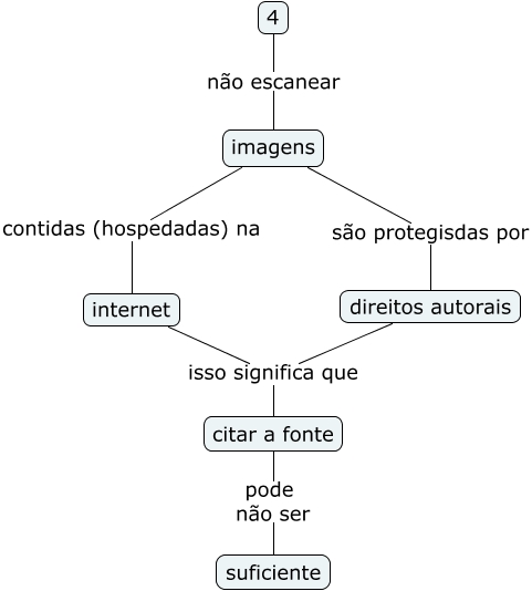 Esse mapa conceitual, produzido no IHMC CmapTools, tem a informação relacionada a: quatro, citar a fonte pode não ser suficiente, direitos autorais isso significa que citar a fonte, internet isso significa que citar a fonte, imagens são protegisdas por direitos autorais, 4 não escanear imagens, imagens contidas (hospedadas) na internet