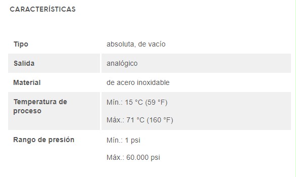 Caracteristicas A-10.jpg Características manómetro.jpg Características Model S.jpg Caracteristicas PN.jpg Caracteristicas TJE.jpg Características VEGABAR 29.jpg Caracteristicas VEGABAR 38.jpg Control con sensor de presión.jpg Esquema.jpg Filtros HEPA.jpg image.jpg image1.jpg image2.jpg image3.jpg image31.jpg image4.jpg Imagen A-10.jpg Imagen manómetro.jpg Imagen máscara EPAP.jpg Imagen Model S.jpg Imagen PN.jpg Imagen sensor de presion hidrostática.jpg Imagen sensor sumergible.jpg Imagen sensor tradicional.jpg Imagen TJE.jpg Imagen VEGABAR 29.jpg Imagen VEGABAR 38.jpg Instrucciones de montaje.url Medicion de niveles en depositos.jpg Respiradores.jpg Sensor de presion de freno.jpg Sensor de presion para flujo de proceso.jpg SENSORES DE PRESIÓN.cmap Terapias de oxigeno.jpg Video airbags para peaton.url Video conexiones.url Video funcionamiento.url Video funcionamiento 3.url Video funcionamineto.url Video funcionamineto 3.url Video funcionamineto sensor MAP.url Video medidor de presión.url Video tutorial de conexión de proceso.url Video tutorial de conexiones de salida.url Video tutorial intalación.url