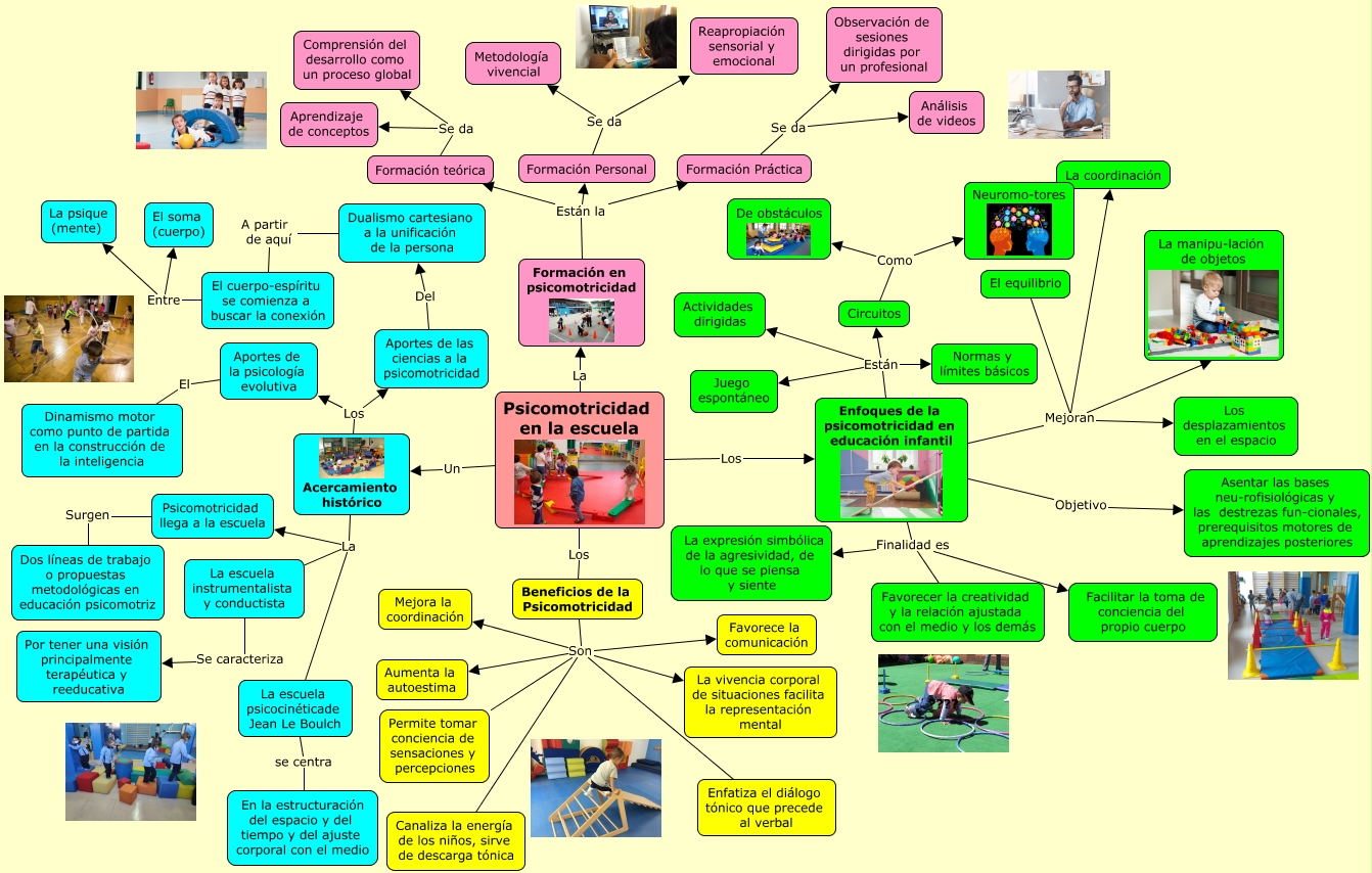 Este Cmap, tiene información relacionada con: Psicomotricidad en la escuela Reina, Beneficios de la Psicomotricidad Son Canaliza la energía de los niños, sirve de descarga tónica, Circuitos Como De obstáculos, La escuela instrumentalista y conductista Se caracteriza Por tener una visión principalmente terapéutica y reeducativa, Beneficios de la Psicomotricidad Son La vivencia corporal de situaciones facilita la representación mental, Psicomotricidad en la escuela La Formación en psicomotricidad, Enfoques de la psicomotricidad en educación infantil Mejoran Los desplazamientos en el espacio, Enfoques de la psicomotricidad en educación infantil Están Circuitos, Formación Personal Se da Metodología vivencial, Enfoques de la psicomotricidad en educación infantil Mejoran La manipu-lación de objetos, Formación en psicomotricidad Están la Formación Práctica, Enfoques de la psicomotricidad en educación infantil Objetivo Asentar las bases neu-rofisiológicas y las destrezas fun-cionales, prerequisitos motores de aprendizajes posteriores, Enfoques de la psicomotricidad en educación infantil Están Normas y límites básicos, Psicomotricidad en la escuela Un Acercamiento histórico, Acercamiento histórico La La escuela instrumentalista y conductista, Beneficios de la Psicomotricidad Son Mejora la coordinación, Formación Personal Se da Reapropiación sensorial y emocional, Beneficios de la Psicomotricidad Son Aumenta la autoestima, Enfoques de la psicomotricidad en educación infantil Están Juego espontáneo, Enfoques de la psicomotricidad en educación infantil Mejoran La coordinación, Formación teórica Se da Comprensión del desarrollo como un proceso global