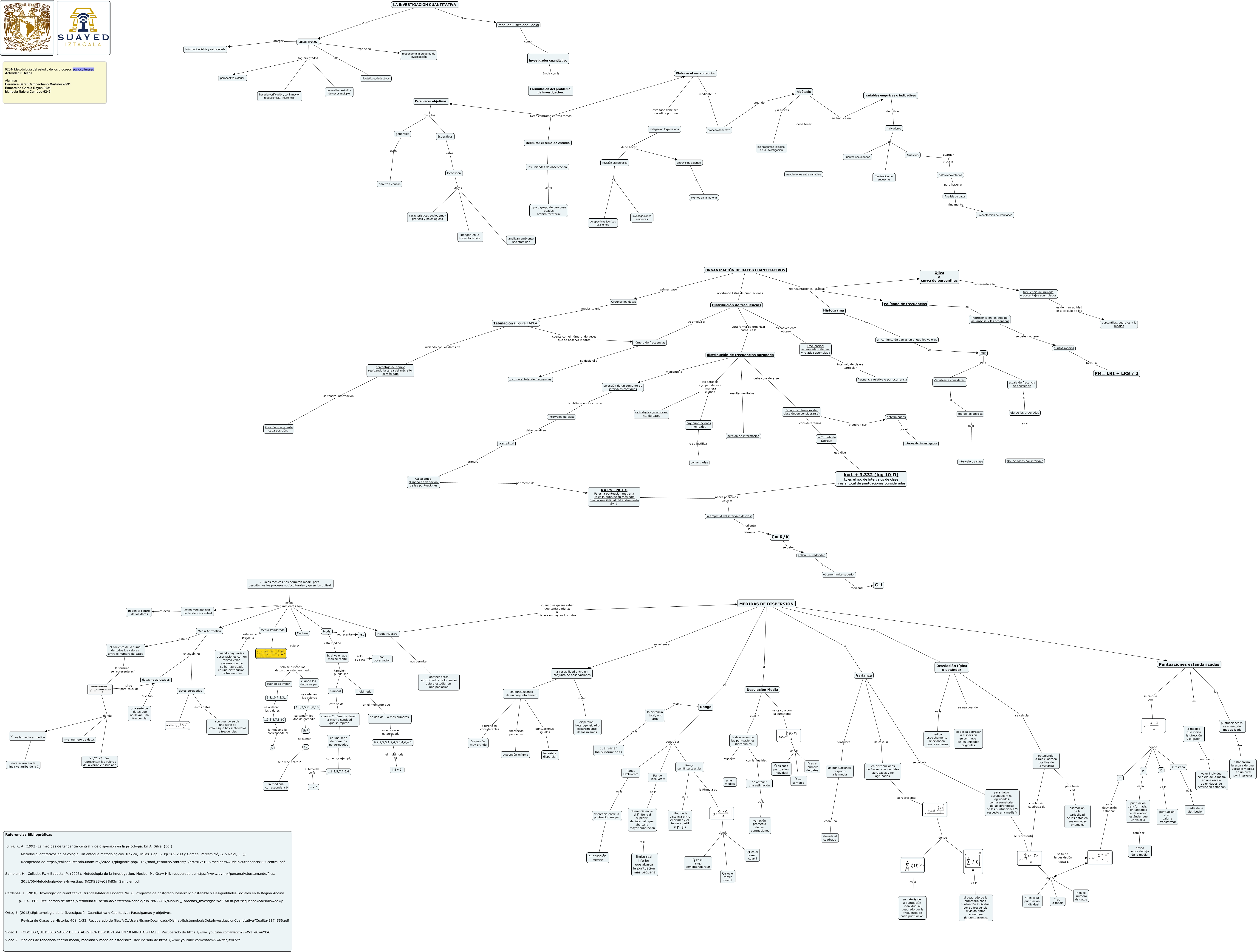 Este Cmap, tiene información relacionada con: Mapa Final, hipótesis y a su ves las preguntas iniciales de la Investigación, Media Ponderada esto se presenta cuando hay varias observaciones con un mismo valor y ocurre cuando se han agrupado en una distribución de frecuencias, X es la media arimética ???? nota aclarativa la linea va arriba de la X, datos no agrupados que son una serie de datos que no llevan una frecuencia, de obtener una estimación de la variación promedio de las puntuaciones, Me solo se buscan los datos que esten en medio cuando los datos es par, es la el cuadrado de la sumatoria cada puntuación individual por su frecuencia, dividida entre el número de puntuaciones., Desviación típica o estándar se calcula obteniendo la raíz cuadrada positiva de la varianza, puntos medios formula PM= LRI + LRS / 2, donde Q3 es el tercer cuartil, 1,1,2,5,7,7,6,4 el bimodal sería 1 y 7, OBJETIVOS son orientados perspectiva exterior, eje de las ordenadas es el No. de casos por intervalo, Establecer objetivos los y los generales, Indicadores de Fuentes secundarias, donde, k=1 + 3.332 (log 10 n) k, es el no. de intervalos de clase n es el total de puntuaciones consideradas ahora podremos calcular la amplitud del intervalo de clase, Elaborar el marco teoríco mediante un proceso deductivo, donde Yi es cada puntuación individual, Varianza se calcula para datos agrupados y no agrupados, con la sumatoria, de las diferencias de las puntuaciones Yi respecto a la media Y