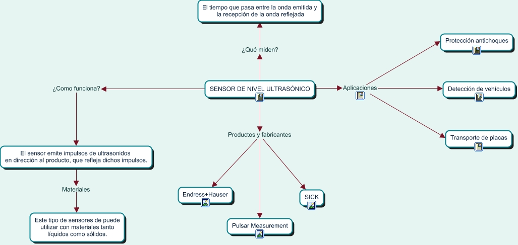 Este Cmap, tiene información relacionada con: Sensores de nivel ultrasónico, SENSOR DE NIVEL ULTRASÓNICO Productos y fabricantes SICK, SENSOR DE NIVEL ULTRASÓNICO Aplicaciones Detección de vehículos, SENSOR DE NIVEL ULTRASÓNICO Aplicaciones Transporte de placas, SENSOR DE NIVEL ULTRASÓNICO ¿Como funciona? El sensor emite impulsos de ultrasonidos en dirección al producto, que refleja dichos impulsos., El sensor emite impulsos de ultrasonidos en dirección al producto, que refleja dichos impulsos. Materiales Este tipo de sensores de puede utilizar con materiales tanto líquidos como sólidos., SENSOR DE NIVEL ULTRASÓNICO Aplicaciones Protección antichoques, SENSOR DE NIVEL ULTRASÓNICO Productos y fabricantes Pulsar Measurement, SENSOR DE NIVEL ULTRASÓNICO ¿Qué miden? El tiempo que pasa entre la onda emitida y la recepción de la onda reflejada, SENSOR DE NIVEL ULTRASÓNICO Productos y fabricantes Endress+Hauser