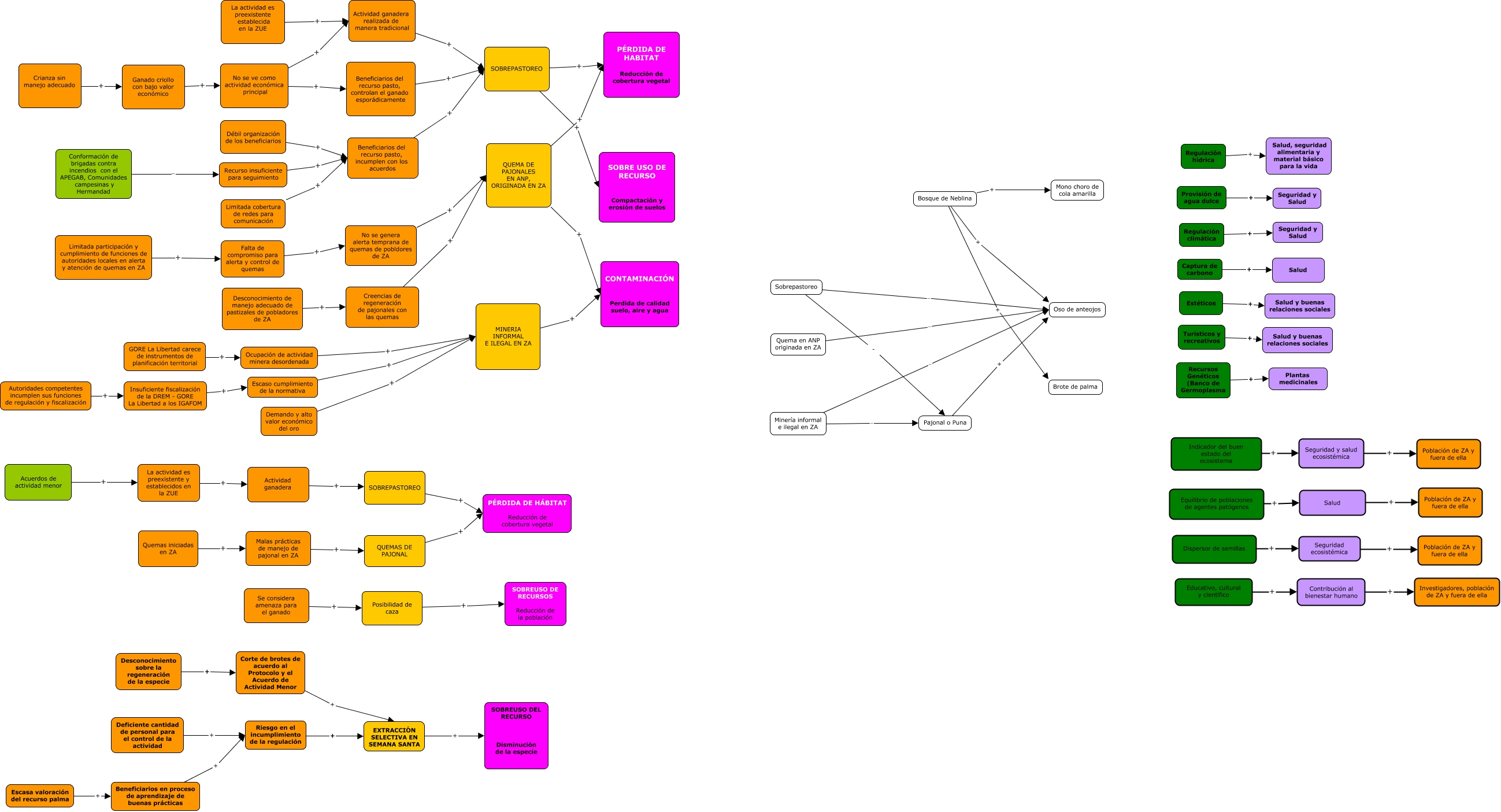 Este Cmap, tiene información relacionada con: CONSOLIDADO 1_OR, Bosque de Neblina + Oso de anteojos, Beneficiarios en proceso de aprendizaje de buenas prácticas + Riesgo en el incumplimiento de la regulación, Creencias de regeneración de pajonales con las quemas + QUEMA DE PAJONALES EN ANP, ORIGINADA EN ZA, No se genera alerta temprana de quemas de pobldores de ZA + QUEMA DE PAJONALES EN ANP, ORIGINADA EN ZA, Beneficiarios del recurso pasto, incumplen con los acuerdos + SOBREPASTOREO, Recurso insuficiente para seguimiento + Beneficiarios del recurso pasto, incumplen con los acuerdos, Conformación de brigadas contra incendios con el APEGAB, Comunidades campesinas y Hermandad - Recurso insuficiente para seguimiento, No se ve como actividad económica principal + Actividad ganadera realizada de manera tradicional, QUEMA DE PAJONALES EN ANP, ORIGINADA EN ZA + PÉRDIDA DE HABITAT Reducción de cobertura vegetal, Turísticos y recreativos + Salud y buenas relaciones sociales, Bosque de Neblina + Brote de palma, Ocupación de actividad minera desordenada + MINERIA INFORMAL E ILEGAL EN ZA, GORE La Libertad carece de instrumentos de planificación territorial + Ocupación de actividad minera desordenada, Desconocimiento de manejo adecuado de pastizales de pobladores de ZA + Creencias de regeneración de pajonales con las quemas, Corte de brotes de acuerdo al Protocolo y el Acuerdo de Actividad Menor + EXTRACCIÓN SELECTIVA EN SEMANA SANTA, Limitada participación y cumplimiento de funciones de autoridades locales en alerta y atención de quemas en ZA + Falta de compromiso para alerta y control de quemas, Captura de carbono + Salud, La actividad es preexistente establecida en la ZUE + Actividad ganadera realizada de manera tradicional, Beneficiarios del recurso pasto, controlan el ganado esporádicamente + SOBREPASTOREO, Indicador del buen estado del ecosistema + Seguridad y salud ecosistémica