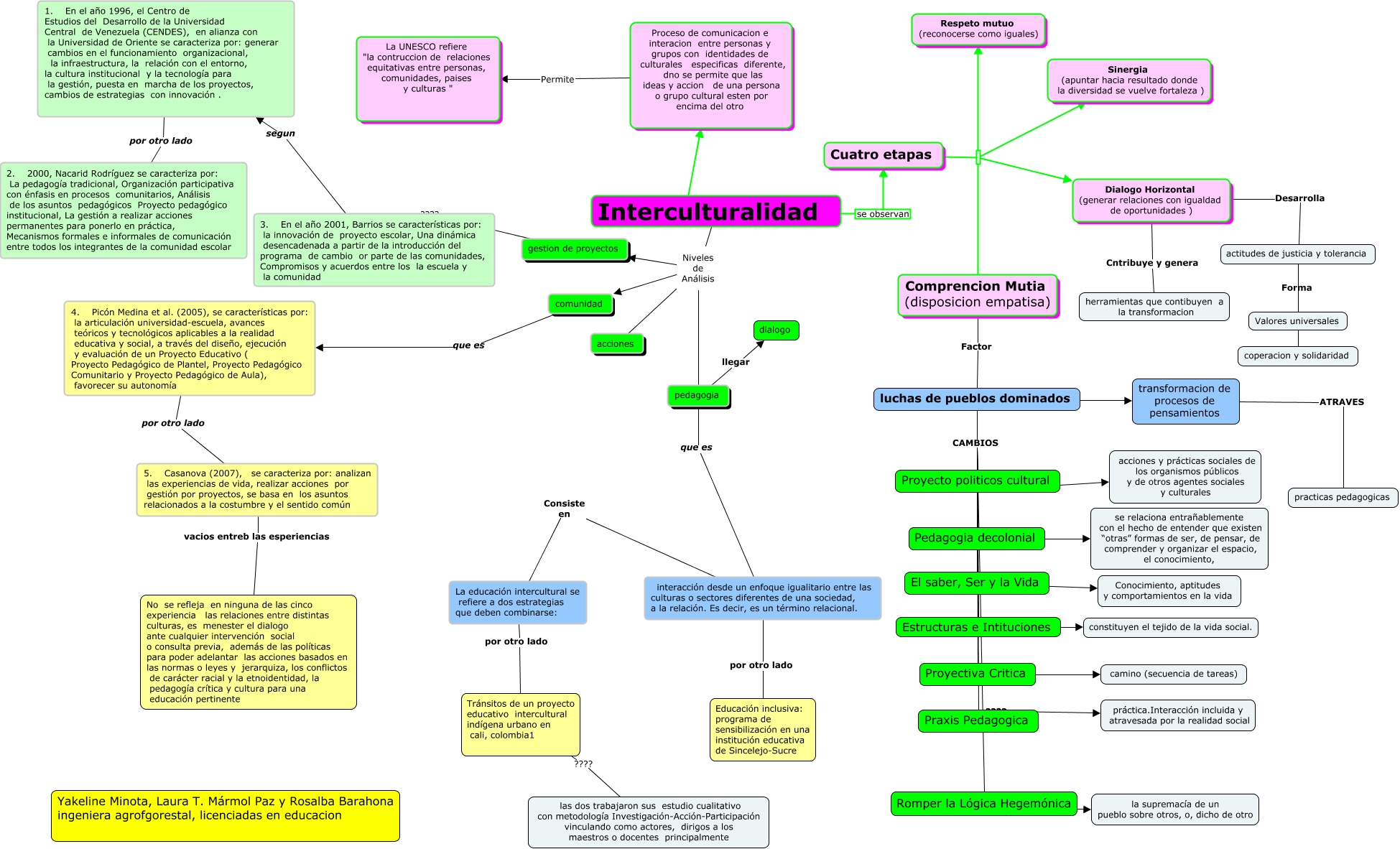 Este Cmap, tiene información relacionada con: Dificultades en el desarrollo de origen social, Romper la Lógica Hegemónica ???? la supremacía de un pueblo sobre otros, o, dicho de otro, Tránsitos de un proyecto educativo intercultural indígena urbano en cali, colombia1 ???? las dos trabajaron sus estudio cualitativo con metodología Investigación-Acción-Participación vinculando como actores, dirigos a los maestros o docentes principalmente, Comprencion Mutia (disposicion empatisa) Factor luchas de pueblos dominados, actitudes de justicia y tolerancia ???? coperacion y solidaridad, La educación intercultural se refiere a dos estrategias que deben combinarse: por otro lado Tránsitos de un proyecto educativo intercultural indígena urbano en cali, colombia1, Proyectiva Critica ???? camino (secuencia de tareas), luchas de pueblos dominados es transformacion de procesos de pensamientos, Interculturalidad Niveles de Análisis acciones, Interculturalidad Niveles de Análisis gestion de proyectos, Interculturalidad Niveles de Análisis comunidad, luchas de pueblos dominados CAMBIOS Proyecto politicos cultural, Pedagogia decolonial ???? se relaciona entrañablemente con el hecho de entender que existen “otras” formas de ser, de pensar, de comprender y organizar el espacio, el conocimiento,, actitudes de justicia y tolerancia Forma Valores universales, Interculturalidad se observan Cuatro etapas, 5. Casanova (2007), se caracteriza por: analizan las experiencias de vida, realizar acciones por gestión por proyectos, se basa en los asuntos relacionados a la costumbre y el sentido común vacios entreb las esperiencias No se refleja en ninguna de las cinco experiencia las relaciones entre distintas culturas, es menester el dialogo ante cualquier intervención social o consulta previa, además de las políticas para poder adelantar las acciones basados en las normas o leyes y jerarquiza, los conflictos de carácter racial y la etnoidentidad, la pedagogía crítica y cultura para una educación pertinente, luchas de pueblos dominados CAMBIOS Proyectiva Critica, Dialogo Horizontal (generar relaciones con igualdad de oportunidades ) Desarrolla actitudes de justicia y tolerancia, transformacion de procesos de pensamientos ATRAVES practicas pedagogicas, Cuatro etapas Respeto mutuo (reconocerse como iguales), Dialogo Horizontal (generar relaciones con igualdad de oportunidades ) Cntribuye y genera herramientas que contibuyen a la transformacion