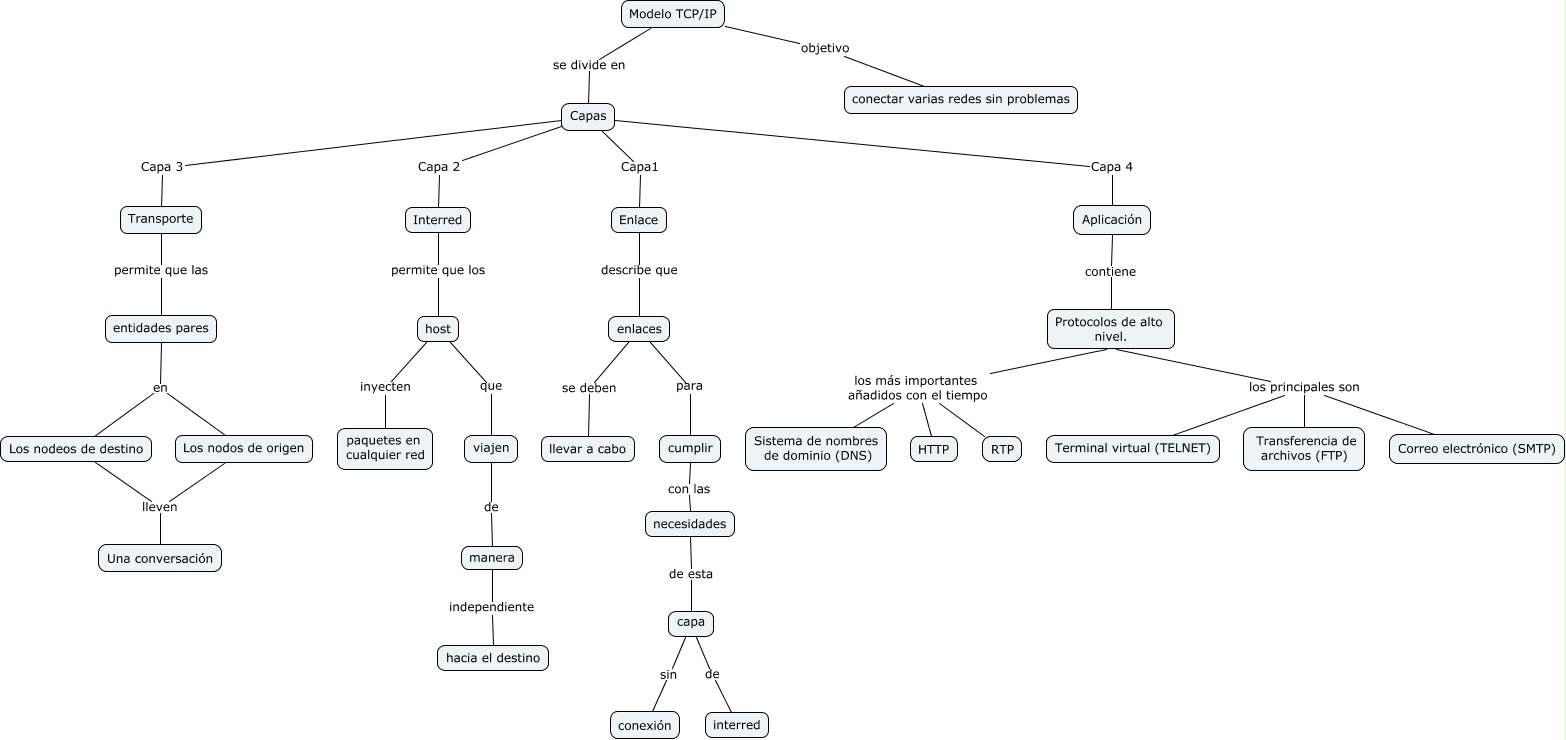 Este Cmap, tiene información relacionada con: 1.4.2 El modelo de referencia TCP-IP, Protocolos de alto nivel. los más importantes añadidos con el tiempo HTTP, Protocolos de alto nivel. los principales son Terminal virtual (TELNET), capa de interred, Protocolos de alto nivel. los más importantes añadidos con el tiempo RTP, Interred permite que los host, cumplir con las necesidades, manera independiente hacia el destino, Protocolos de alto nivel. los más importantes añadidos con el tiempo Sistema de nombres de dominio (DNS), Modelo TCP/IP objetivo conectar varias redes sin problemas, host inyecten paquetes en cualquier red, Capas Capa1 Enlace, enlaces se deben llevar a cabo, entidades pares en Los nodeos de destino, necesidades de esta capa, Aplicación contiene Protocolos de alto nivel., viajen de manera, Los nodos de origen lleven Una conversación, Capas Capa 4 Aplicación, Modelo TCP/IP se divide en Capas, Capas Capa 2 Interred