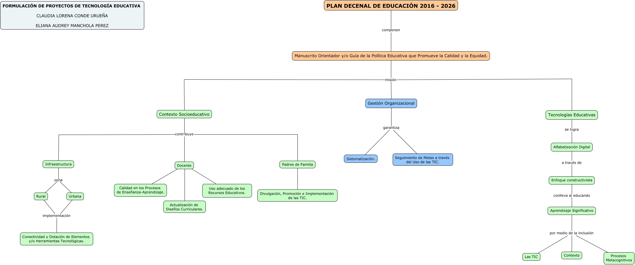 Este Cmap, tiene información relacionada con: MAPA INFORMACION, Gestión Organizacional garantiza Seguimiento de Metas a través del Uso de las TIC., Tecnologías Educativas se logra Alfabetización Digital, Contexto Socioeducativo contribuye Infraestructura, Contexto Socioeducativo contribuye Docente, Gestión Organizacional garantiza Sistematización., Aprendizaje Significativo por medio de la inclusión Procesos Metacognitivos, Docente ???? Actualización de Diseños Curriculares., Manuscrito Orientador y/o Guía de la Política Educativa que Promueve la Calidad y la Equidad. misión Tecnologías Educativas, Manuscrito Orientador y/o Guía de la Política Educativa que Promueve la Calidad y la Equidad. misión Contexto Socioeducativo, Rural implementación Conectividad y Dotación de Elementos y/o Herramientas Tecnológicas., Infraestructura zona Rural, Alfabetización Digital a través de Enfoque constructivista, Enfoque constructivista conlleva al educando Aprendizaje Significativo, Infraestructura zona Urbana, Docente ???? Uso adecuado de los Recursos Educativos., Aprendizaje Significativo por medio de la inclusión Contexto, Padres de Familia ???? Divulgación, Promoción e Implementación de las TIC., PLAN DECENAL DE EDUCACIÓN 2016 - 2026 componen Manuscrito Orientador y/o Guía de la Política Educativa que Promueve la Calidad y la Equidad., Docente ???? Calidad en los Procesos de Enseñanza-Aprendizaje., Aprendizaje Significativo por medio de la inclusión Las TIC