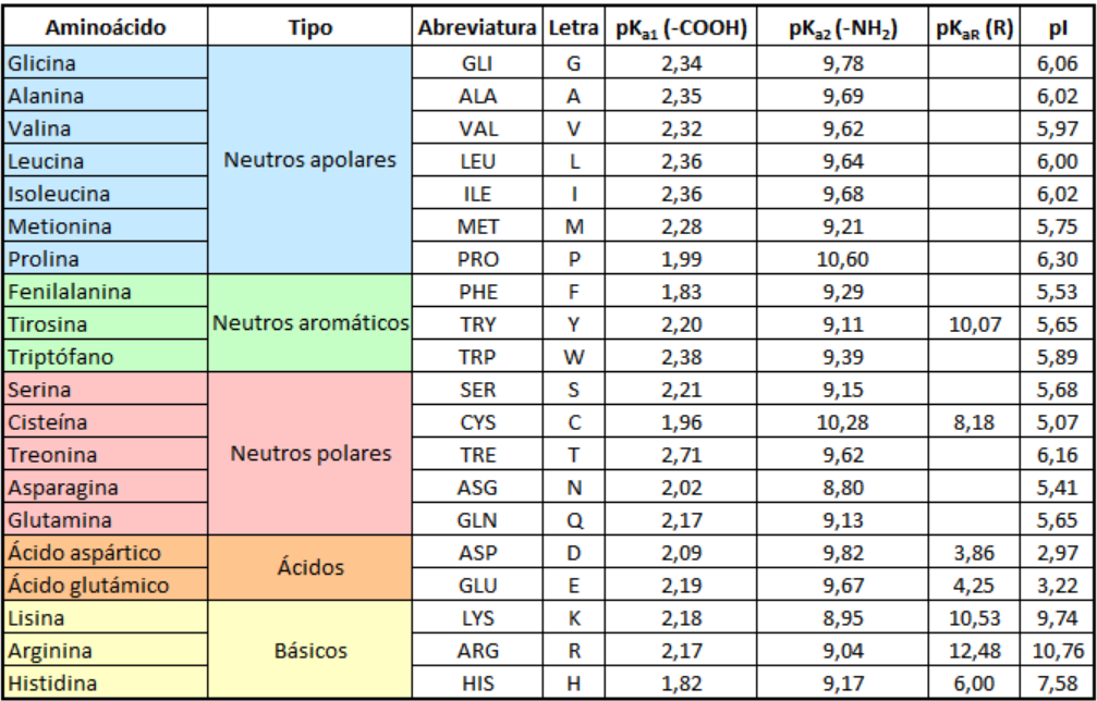 Carácter anfótero de los aminoácidos versión corta.png Carácter anfótero de los aminoácidos versión extendida.png Cuántas proteínas hay en una célula.png Isomería espacila de los aminoácidos.png Proporción de lípidos en los alimentos.jpg Tabla del punto isoeléctrico de los aminoácidos.png