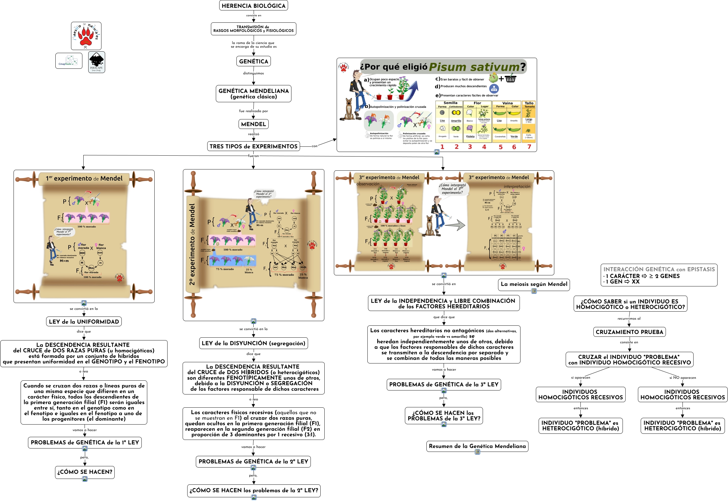 Este Cmap, tiene información relacionada con: Tema 03.03 De los Experimentos de Mendel a las Leyes de Mendel, LEY de la UNIFORMIDAD dice que La DESCENDENCIA RESULTANTE del CRUCE de DOS RAZAS PURAS (u homocigóticas) está formada por un conjunto de híbridos que presentan uniformidad en el GENOTIPO y el FENOTIPO, HERENCIA BIOLÓGICA consiste en TRANSMISIÓN de RASGOS MORFOLÓGICOS y FISIOLÓGICOS, LEY de la DISYUNCIÓN (segregación) dice que La DESCENDENCIA RESULTANTE del CRUCE de DOS HÍBRIDOS (o heterocigóticos) son diferentes FENOTÍPICAMENTE unos de otros, debido a la DISYUNCIÓN o SEGREGACIÓN de los factores responsable de dichos caracteres, GENÉTICA distinguimos GENÉTICA MENDELIANA (genética clásica), INDIVIDUOS HOMOCIGÓTICOS RECESIVOS entonces INDIVIDUO "PROBLEMA" es HETEROCIGÓTICO (híbrido), Los caracteres físicos recesivos (aquellos que no se muestran en F1) al cruzar dos razas puras, quedan ocultos en la primera generación filial (F1), reaparecen en la segunda generación filial (F2) en proporción de 3 dominantes por 1 recesivo (3:1). vamos a hacer PROBLEMAS de GENÉTICA de la 2ª LEY, La DESCENDENCIA RESULTANTE del CRUCE de DOS HÍBRIDOS (o heterocigóticos) son diferentes FENOTÍPICAMENTE unos de otros, debido a la DISYUNCIÓN o SEGREGACIÓN de los factores responsable de dichos caracteres o sea Los caracteres físicos recesivos (aquellos que no se muestran en F1) al cruzar dos razas puras, quedan ocultos en la primera generación filial (F1), reaparecen en la segunda generación filial (F2) en proporción de 3 dominantes por 1 recesivo (3:1)., LEY de la INDEPENDENCIA y LIBRE COMBINACIÓN de los FACTORES HEREDITARIOS que dice que Los caracteres hereditarios no antagónicos (dos alternativas, por ejemplo verde vs amarillo) se heredan independientemente unos de otros, debido a que los factores responsables de dichos caracteres se transmiten a la descendencia por separado y se combinan de todas las maneras posibles, TRES TIPOS de EXPERIMENTOS fueron, se convirtió en la LEY de la UNIFORMIDAD, TRES TIPOS de EXPERIMENTOS con, Los caracteres hereditarios no antagónicos (dos alternativas, por ejemplo verde vs amarillo) se heredan independientemente unos de otros, debido a que los factores responsables de dichos caracteres se transmiten a la descendencia por separado y se combinan de todas las maneras posibles vamos a hacer PROBLEMAS de GENÉTICA de la 3ª LEY, MENDEL realizó TRES TIPOS de EXPERIMENTOS, INDIVIDUOS HOMOCIGÓTICOS RECESIVOS entonces INDIVIDUO "PROBLEMA" es HETEROCIGÓTICO (híbrido), PROBLEMAS de GENÉTICA de la 2ª LEY pero, ¿CÓMO SE HACEN los problemas de la 2ª LEY?, CRUZAR el INDIVIDUO "PROBLEMA" con INDIVIDUO HOMOCIGÓTICO RECESIVO si NO aparecen INDIVIDUOS HOMOCIGÓTICOS RECESIVOS, TRES TIPOS de EXPERIMENTOS fueron, TRANSMISIÓN de RASGOS MORFOLÓGICOS y FISIOLÓGICOS la rama de la ciencia que se encarga de su estudio es GENÉTICA, PROBLEMAS de GENÉTICA de la 1ª LEY pero, ¿CÓMO SE HACEN?, GENÉTICA MENDELIANA (genética clásica) fue realizada por MENDEL