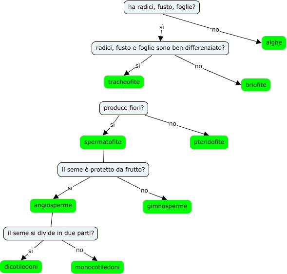 Questa Cmap, creata con IHMC CmapTools, contiene informazioni relative a: classificazione piante, il seme è protetto da frutto? si angiosperme, il seme si divide in due parti? si dicotiledoni, produce fiori? sì spermatofite, radici, fusto e foglie sono ben differenziate? no briofite, il seme si divide in due parti? no monocotiledoni, ha radici, fusto, foglie? sì radici, fusto e foglie sono ben differenziate?, ha radici, fusto, foglie? no alghe, angiosperme il seme si divide in due parti?, produce fiori? no pteridofite, radici, fusto e foglie sono ben differenziate? sì tracheofite, spermatofite il seme è protetto da frutto?, tracheofite produce fiori?, il seme è protetto da frutto? no gimnosperme