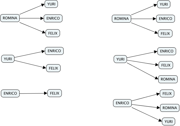 Questa Cmap, creata con IHMC CmapTools, contiene informazioni relative a: TORNEO, ENRICO ROMINA, ROMINA FELIX, YURI ENRICO, ROMINA FELIX, ENRICO YURI, ENRICO FELIX, YURI FELIX, ROMINA YURI, YURI ROMINA, ROMINA YURI, ROMINA ENRICO, ROMINA ENRICO, YURI ENRICO, ENRICO FELIX, YURI FELIX