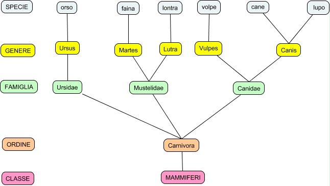 Questa Cmap, creata con IHMC CmapTools, contiene informazioni relative a: Schema cladistico carnivori, Canis Canidae, lontra Lutra, Vulpes Canidae, Ursus Ursidae, orso Ursus, Martes Mustelidae, cane Canis, Lutra Mustelidae, volpe Vulpes, Carnivora MAMMIFERI, faina Martes, lupo Canis, Canidae Carnivora, Ursidae Carnivora, Mustelidae Carnivora