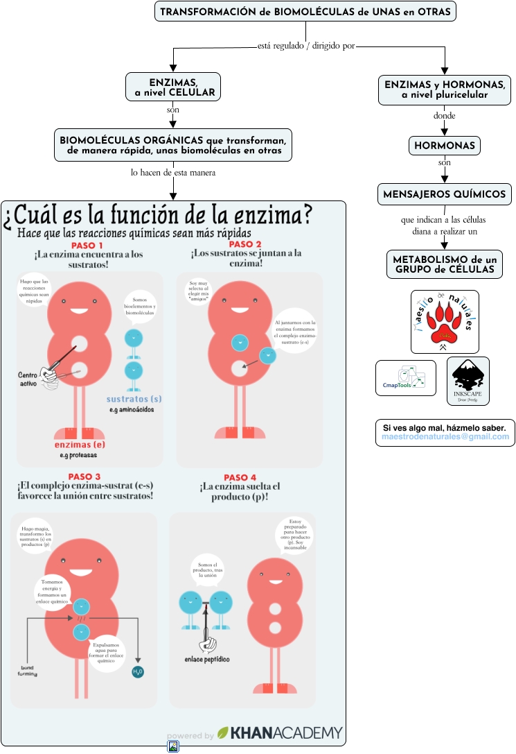 Este Cmap, tiene información relacionada con: Tema 08.01.02 Quién regula las reacciones metabólicas, TRANSFORMACIÓN de BIOMOLÉCULAS de UNAS en OTRAS está regulado / dirigido por ENZIMAS, a nivel CELULAR, ENZIMAS, a nivel CELULAR son BIOMOLÉCULAS ORGÁNICAS que transforman, de manera rápida, unas biomoléculas en otras, ENZIMAS y HORMONAS, a nivel pluricelular donde HORMONAS, HORMONAS son MENSAJEROS QUÍMICOS, TRANSFORMACIÓN de BIOMOLÉCULAS de UNAS en OTRAS está regulado / dirigido por ENZIMAS y HORMONAS, a nivel pluricelular, MENSAJEROS QUÍMICOS que indican a las células diana a realizar un METABOLISMO de un GRUPO de CÉLULAS, BIOMOLÉCULAS ORGÁNICAS que transforman, de manera rápida, unas biomoléculas en otras lo hacen de esta manera