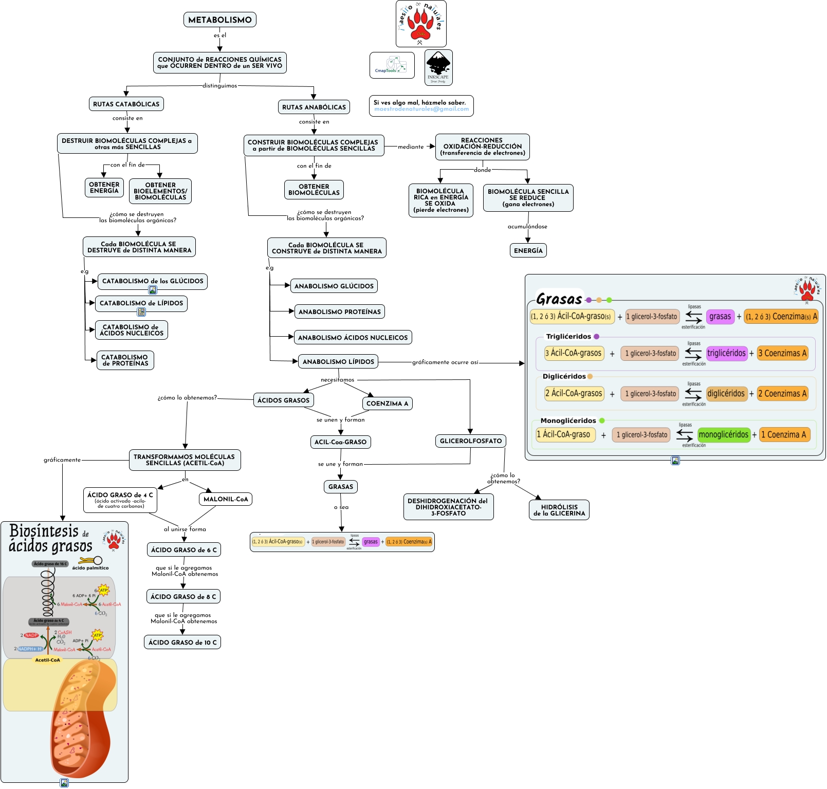 Este Cmap, tiene información relacionada con: Tema 09.06 Anabolismo de los lípidos, TRANSFORMAMOS MOLÉCULAS SENCILLAS (ACETIL-CoA) en MALONIL-CoA, GLICEROLFOSFATO se une y forman GRASAS, Cada BIOMOLÉCULA SE DESTRUYE de DISTINTA MANERA e.g CATABOLISMO de los GLÚCIDOS, RUTAS CATABÓLICAS consiste en DESTRUIR BIOMOLÉCULAS COMPLEJAS a otras más SENCILLAS, ANABOLISMO LÍPIDOS necesitamos COENZIMA A, Cada BIOMOLÉCULA SE CONSTRUYE de DISTINTA MANERA e.g ANABOLISMO ÁCIDOS NUCLEICOS, CONJUNTO de REACCIONES QUÍMICAS que OCURREN DENTRO de un SER VIVO distinguimos RUTAS ANABÓLICAS, COENZIMA A se unen y forman ACIL-Coa-GRASO, ÁCIDO GRASO de 8 C que si le agregamos Malonil-CoA obtenemos ÁCIDO GRASO de 10 C, TRANSFORMAMOS MOLÉCULAS SENCILLAS (ACETIL-CoA) gráficamente, ACIL-Coa-GRASO se une y forman GRASAS, CONSTRUIR BIOMOLÉCULAS COMPLEJAS a partir de BIOMOLÉCULAS SENCILLAS ¿cómo se destruyen las biomoléculas orgánicas? Cada BIOMOLÉCULA SE CONSTRUYE de DISTINTA MANERA, ANABOLISMO LÍPIDOS necesitamos GLICEROLFOSFATO, ÁCIDO GRASO de 4 C (ácido activado -acilo- de cuatro carbonos) al unirse forma ÁCIDO GRASO de 6 C, Cada BIOMOLÉCULA SE DESTRUYE de DISTINTA MANERA e.g CATABOLISMO de PROTEÍNAS, METABOLISMO es el CONJUNTO de REACCIONES QUÍMICAS que OCURREN DENTRO de un SER VIVO, Cada BIOMOLÉCULA SE CONSTRUYE de DISTINTA MANERA e.g ANABOLISMO GLÚCIDOS, MALONIL-CoA al unirse forma ÁCIDO GRASO de 6 C, CONSTRUIR BIOMOLÉCULAS COMPLEJAS a partir de BIOMOLÉCULAS SENCILLAS con el fin de OBTENER BIOMOLÉCULAS, Cada BIOMOLÉCULA SE DESTRUYE de DISTINTA MANERA e.g CATABOLISMO de LÍPIDOS
