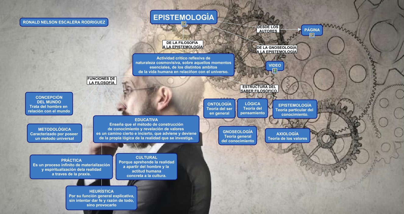 Este Cmap, tiene información relacionada con: TAREA 1 DESEI RONALD ESCALERA, Actividad critico reflexiva de naturaleza cosmovisiva, sobre aquellos momentos esenciales, de los distintos ambitos de la vida humana en relaciñon con el universo. FUNCIONES DE LA FILOSOFÍA CONCEPCIÓN DEL MUNDO Trata del hombre en relación con el mundo, Actividad critico reflexiva de naturaleza cosmovisiva, sobre aquellos momentos esenciales, de los distintos ambitos de la vida humana en relaciñon con el universo. ESTRUCTURA DEL SABER FILOSÓFICO. AXIOLOGÍA Teoria de los valores, EPISTEMOLOGÍA DESDE LOS AUTORES PÁGINA, Actividad critico reflexiva de naturaleza cosmovisiva, sobre aquellos momentos esenciales, de los distintos ambitos de la vida humana en relaciñon con el universo. ESTRUCTURA DEL SABER FILOSÓFICO. EPISTEMOLOGÍA Teoría particular del conocimiento., Actividad critico reflexiva de naturaleza cosmovisiva, sobre aquellos momentos esenciales, de los distintos ambitos de la vida humana en relaciñon con el universo. FUNCIONES DE LA FILOSOFÍA METODOLÓGICA Caracterizado por poseer un metodo universal, Actividad critico reflexiva de naturaleza cosmovisiva, sobre aquellos momentos esenciales, de los distintos ambitos de la vida humana en relaciñon con el universo. ESTRUCTURA DEL SABER FILOSÓFICO. ONTOLOGÍA Teoría del ser en general, Actividad critico reflexiva de naturaleza cosmovisiva, sobre aquellos momentos esenciales, de los distintos ambitos de la vida humana en relaciñon con el universo. FUNCIONES DE LA FILOSOFÍA PRÁCTICA Es un proceso infinito de materialización y espiritualización dela realidad a traves de la praxis., Actividad critico reflexiva de naturaleza cosmovisiva, sobre aquellos momentos esenciales, de los distintos ambitos de la vida humana en relaciñon con el universo. FUNCIONES DE LA FILOSOFÍA CULTURAL Porque aprehende la realidad a apartir del hombre y la actitud humana concreta a la cultura., Actividad critico reflexiva de naturaleza cosmovisiva, sobre aquellos momentos esenciales, de los distintos ambitos de la vida humana en relaciñon con el universo. ESTRUCTURA DEL SABER FILOSÓFICO. LÓGICA Teoría del pensamiento, Actividad critico reflexiva de naturaleza cosmovisiva, sobre aquellos momentos esenciales, de los distintos ambitos de la vida humana en relaciñon con el universo. FUNCIONES DE LA FILOSOFÍA HEURÍSTICA Por su función general explicativa, sin intentar dar fe y razón de todo, sino provocarlo, Actividad critico reflexiva de naturaleza cosmovisiva, sobre aquellos momentos esenciales, de los distintos ambitos de la vida humana en relaciñon con el universo. FUNCIONES DE LA FILOSOFÍA EDUCATIVA Enseña que el método de construcción de conocimiento y revelación de valores es un camino cierto e incierto, que adviene y deviene de la propia lógica de la realidad que se investiga., EPISTEMOLOGÍA DE LA GNOSEOLOGÍA A LA EPISTEMOLOGÍA VIDEO, Actividad critico reflexiva de naturaleza cosmovisiva, sobre aquellos momentos esenciales, de los distintos ambitos de la vida humana en relaciñon con el universo. ESTRUCTURA DEL SABER FILOSÓFICO. GNOSEOLOGÍA Teoria general del conocimiento, EPISTEMOLOGÍA DE LA FILOSOFÍA A LA EPISTEMOLOGÍA Actividad critico reflexiva de naturaleza cosmovisiva, sobre aquellos momentos esenciales, de los distintos ambitos de la vida humana en relaciñon con el universo.