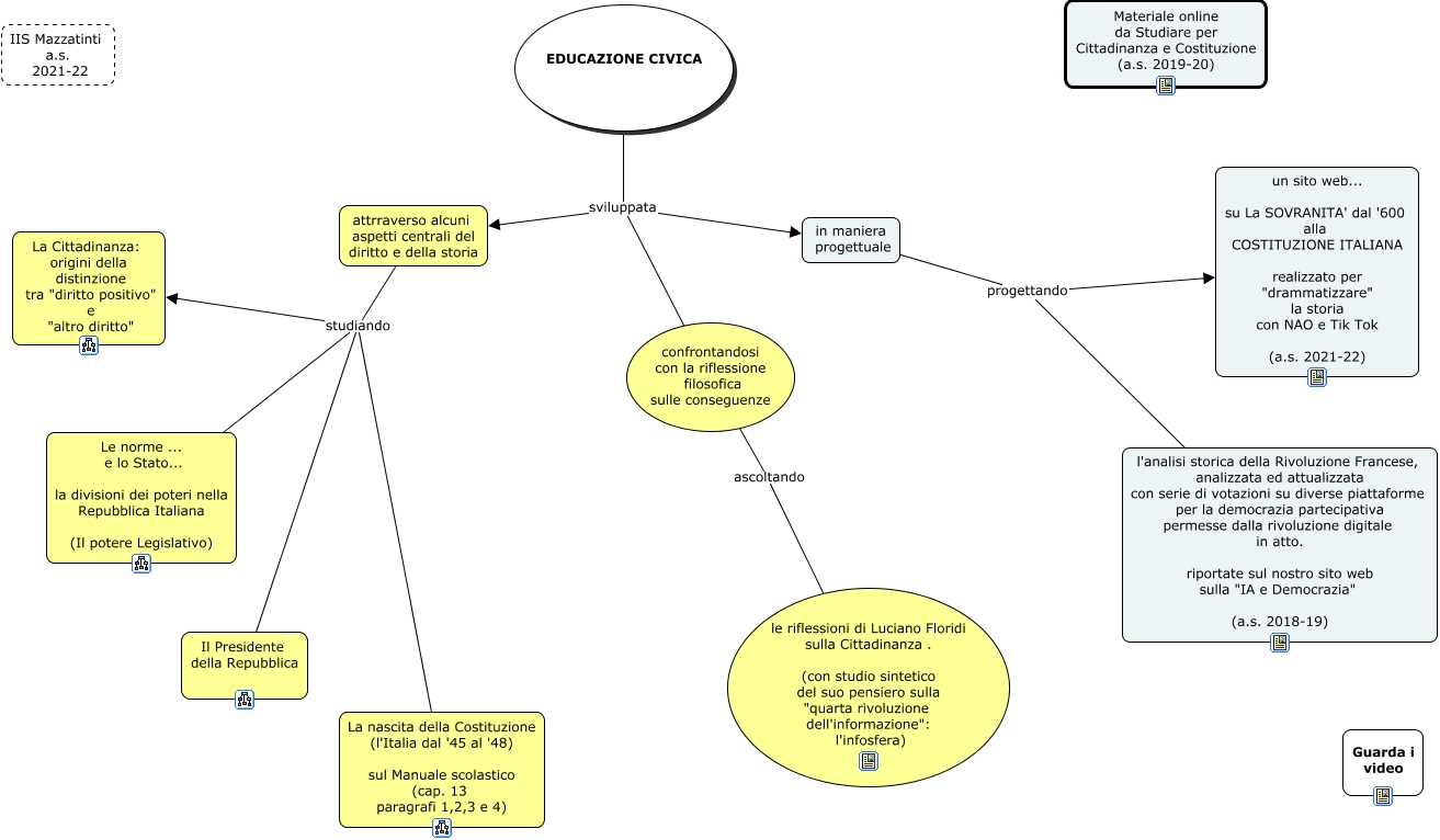Questa Cmap, creata con IHMC CmapTools, contiene informazioni relative a: Educazione Civica 2021-22, in maniera progettuale progettando l'analisi storica della Rivoluzione Francese, analizzata ed attualizzata con serie di votazioni su diverse piattaforme per la democrazia partecipativa permesse dalla rivoluzione digitale in atto. riportate sul nostro sito web sulla "IA e Democrazia" (a.s. 2018-19), attrraverso alcuni aspetti centrali del diritto e della storia studiando La nascita della Costituzione (l'Italia dal '45 al '48) sul Manuale scolastico (cap. 13 paragrafi 1,2,3 e 4), EDUCAZIONE CIVICA sviluppata in maniera progettuale, in maniera progettuale progettando un sito web... su La SOVRANITA' dal '600 alla COSTITUZIONE ITALIANA realizzato per "drammatizzare" la storia con NAO e Tik Tok (a.s. 2021-22), EDUCAZIONE CIVICA sviluppata attrraverso alcuni aspetti centrali del diritto e della storia, confrontandosi con la riflessione filosofica sulle conseguenze ascoltando le riflessioni di Luciano Floridi sulla Cittadinanza . (con studio sintetico del suo pensiero sulla "quarta rivoluzione dell'informazione": l'infosfera), EDUCAZIONE CIVICA sviluppata confrontandosi con la riflessione filosofica sulle conseguenze, attrraverso alcuni aspetti centrali del diritto e della storia studiando La Cittadinanza: origini della distinzione tra "diritto positivo" e "altro diritto", attrraverso alcuni aspetti centrali del diritto e della storia studiando Il Presidente della Repubblica, attrraverso alcuni aspetti centrali del diritto e della storia studiando Le norme ... e lo Stato... la divisioni dei poteri nella Repubblica Italiana (Il potere Legislativo)