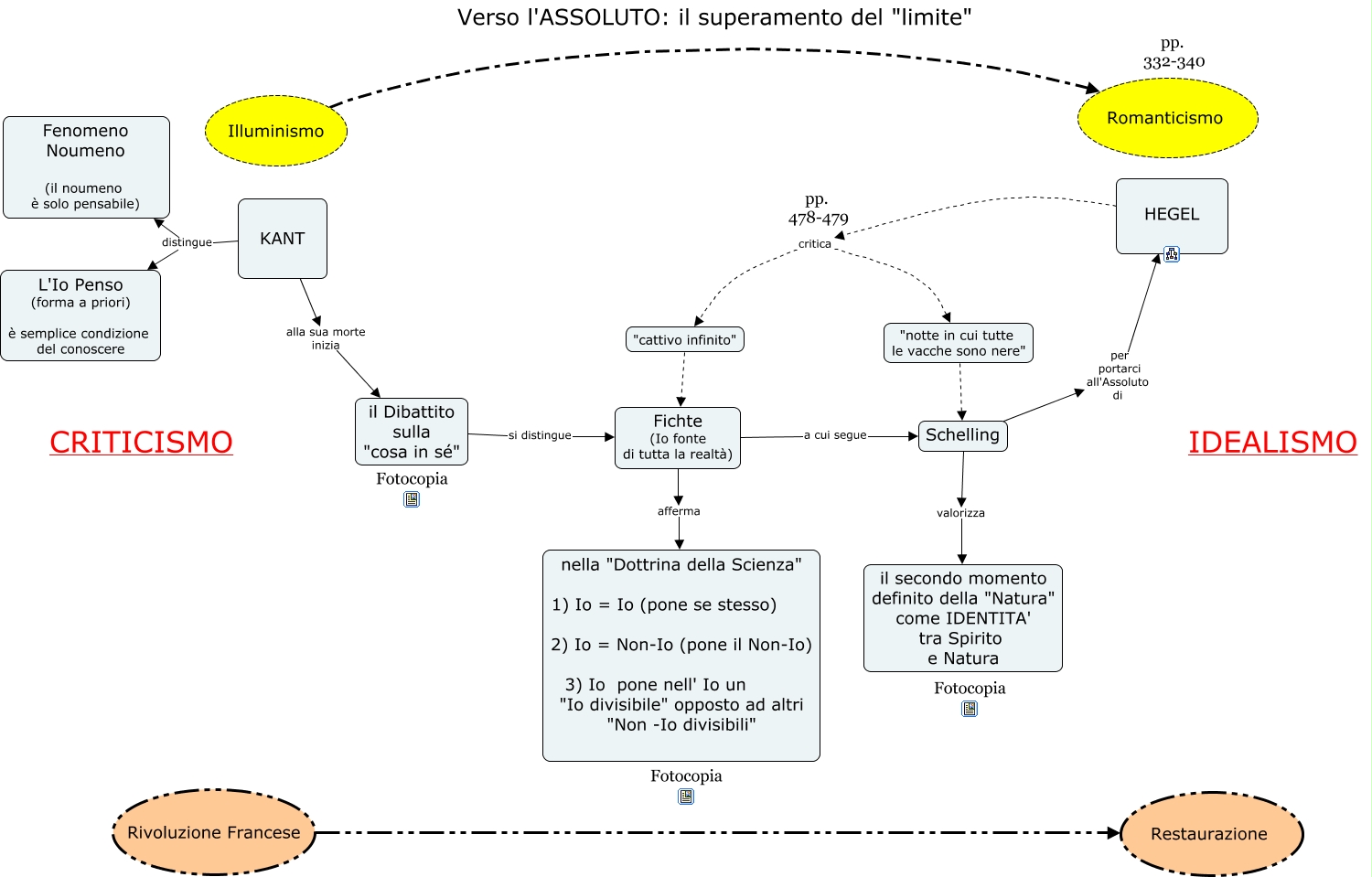 Questa Cmap, creata con IHMC CmapTools, contiene informazioni relative a: dal limite all'assoluto - V B, Rivoluzione Francese Restaurazione, KANT distingue L'Io Penso (forma a priori) è semplice condizione del conoscere, KANT alla sua morte inizia il Dibattito sulla "cosa in sé", Schelling valorizza il secondo momento definito della "Natura" come IDENTITA' tra Spirito e Natura, "cattivo infinito" Fichte (Io fonte di tutta la realtà), KANT distingue Fenomeno Noumeno (il noumeno è solo pensabile), Illuminismo Romanticismo, HEGEL critica "cattivo infinito", il Dibattito sulla "cosa in sé" si distingue Fichte (Io fonte di tutta la realtà), Schelling per portarci all'Assoluto di HEGEL, HEGEL critica "notte in cui tutte le vacche sono nere", Fichte (Io fonte di tutta la realtà) afferma nella "Dottrina della Scienza" 1) Io = Io (pone se stesso) 2) Io = Non-Io (pone il Non-Io) 3) Io pone nell' Io un "Io divisibile" opposto ad altri "Non -Io divisibili", Fichte (Io fonte di tutta la realtà) a cui segue Schelling, "notte in cui tutte le vacche sono nere" Schelling