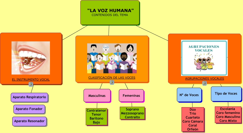 Este Cmap, tiene información relacionada con: LA VOZ, Nº de Voces ???? Dúo Trío Cuarteto Coro Cámara Coral Orfeón, Femeninas Soprano Mezzosoprano Contralto, "LA VOZ HUMANA" CONTENIDOS DEL TEMA EL INSTRUMENTO VOCAL, CLASIFICACIÓN DE LAS VOCES Masculinas, "LA VOZ HUMANA" CONTENIDOS DEL TEMA ???? CLASIFICACIÓN DE LAS VOCES, CLASIFICACIÓN DE LAS VOCES Femeninas, AGRUPACIONES VOCALES Tipo de Voces, AGRUPACIONES VOCALES Nº de Voces, EL INSTRUMENTO VOCAL ???? Aparato Respiratorio, Masculinas Contratenor Tenor Barítono Bajo, "LA VOZ HUMANA" CONTENIDOS DEL TEMA ???? AGRUPACIONES VOCALES, Tipo de Voces ???? Escolanía Coro femenino Coro Masculino Coro Mixto
