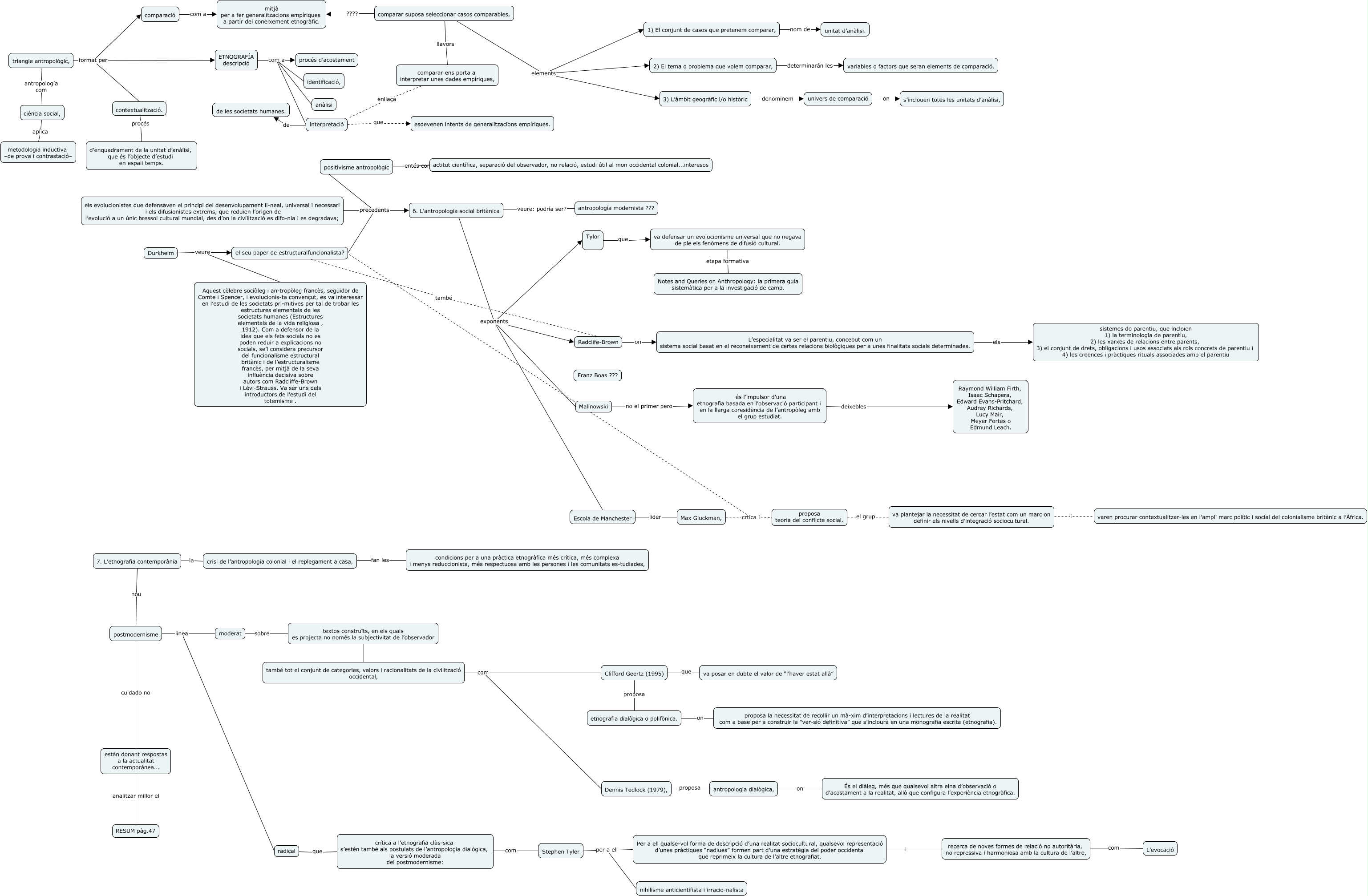 Este Cmap, tiene información relacionada con: ETNOGRAFÍA M1, ETNOGRAFÍA descripció com a identificació,, 6. L’antropologia social britànica exponents Radclife-Brown, comparar suposa seleccionar casos comparables, elements 1) El conjunt de casos que pretenem comparar,, és l’impulsor d’una etnografia basada en l’observació participant i en la llarga coresidència de l’antropòleg amb el grup estudiat. deixebles Raymond William Firth, Isaac Schapera, Edward Evans-Pritchard, Audrey Richards, Lucy Mair, Meyer Fortes o Edmund Leach., postmodernisme linea radical, interpretació de de les societats humanes., comparar suposa seleccionar casos comparables, elements 2) El tema o problema que volem comparar,, els evolucionistes que defensaven el principi del desenvolupament li-neal, universal i necessari i els difusionistes extrems, que reduïen l’origen de l’evolució a un únic bressol cultural mundial, des d’on la civilització es difo-nia i es degradava; precedents positivisme antropològic, Max Gluckman, crtica i el seu paper de estructuralfuncionalista?, contextualització. procés d’enquadrament de la unitat d’anàlisi, que és l’objecte d’estudi en espaii temps., va plantejar la necessitat de cercar l’estat com un marc on definir els nivells d’integració sociocultural. i varen procurar contextualitzar-les en l’ampli marc polític i social del colonialisme britànic a l’Àfrica., Per a ell qualse-vol forma de descripció d’una realitat sociocultural, qualsevol representació d’unes pràctiques “nadiues” formen part d’una estratègia del poder occidental que reprimeix la cultura de l’altre etnografiat. i recerca de noves formes de relació no autoritària, no repressiva i harmoniosa amb la cultura de l’altre,, 7. L’etnografia contemporània nou postmodernisme, ETNOGRAFÍA descripció com a anàlisi, 1) El conjunt de casos que pretenem comparar, nom de unitat d’anàlisi., triangle antropològic, antropología com ciència social,, el seu paper de estructuralfuncionalista? també Radclife-Brown, Dennis Tedlock (1979), proposa antropologia dialògica,, postmodernisme cuidado no estàn donant respostas a la actualitat contemporànea..., 6. L’antropologia social britànica exponents Escola de Manchester