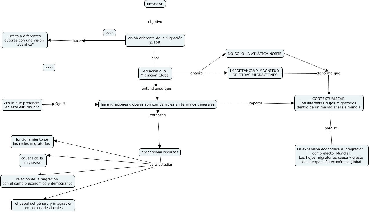 Este Cmap, tiene información relacionada con: McKeown, Atención a la Migración Global entendiendo que las migraciones globales son comparables en términos generales, las migraciones globales son comparables en términos generales entonces proporciona recursos, proporciona recursos para estudiar funcionamiento de las redes migratorias, proporciona recursos para estudiar el papel del género y integración en sociedades locales, proporciona recursos para estudiar relación de la migración con el cambio económico y demográfico, Atención a la Migración Global analiza IMPORTANCIA Y MAGNITUD DE OTRAS MIGRACIONES, NO SOLO LA ATLÁTICA NORTE de forma que CONTEXTUALIZAR los diferentes flujos migratorios dentro de un mismo análisis mundial, Atención a la Migración Global analiza NO SOLO LA ATLÁTICA NORTE, proporciona recursos para estudiar causas de la migración, CONTEXTUALIZAR los diferentes flujos migratorios dentro de un mismo análisis mundial porque La expansión económica e integración como efecto Mundial. Los flujos migratorios causa y efecto de la expansión económica global, Visión diferente de la Migración (p.168) hace Crítica a diferentes autores con una visión "atlántica", ¿Es lo que pretende en este estudio ??? Ojo !!! las migraciones globales son comparables en términos generales, IMPORTANCIA Y MAGNITUD DE OTRAS MIGRACIONES de forma que CONTEXTUALIZAR los diferentes flujos migratorios dentro de un mismo análisis mundial, McKeown objetivo Visión diferente de la Migración (p.168), Visión diferente de la Migración (p.168) ???? Atención a la Migración Global, las migraciones globales son comparables en términos generales importa CONTEXTUALIZAR los diferentes flujos migratorios dentro de un mismo análisis mundial