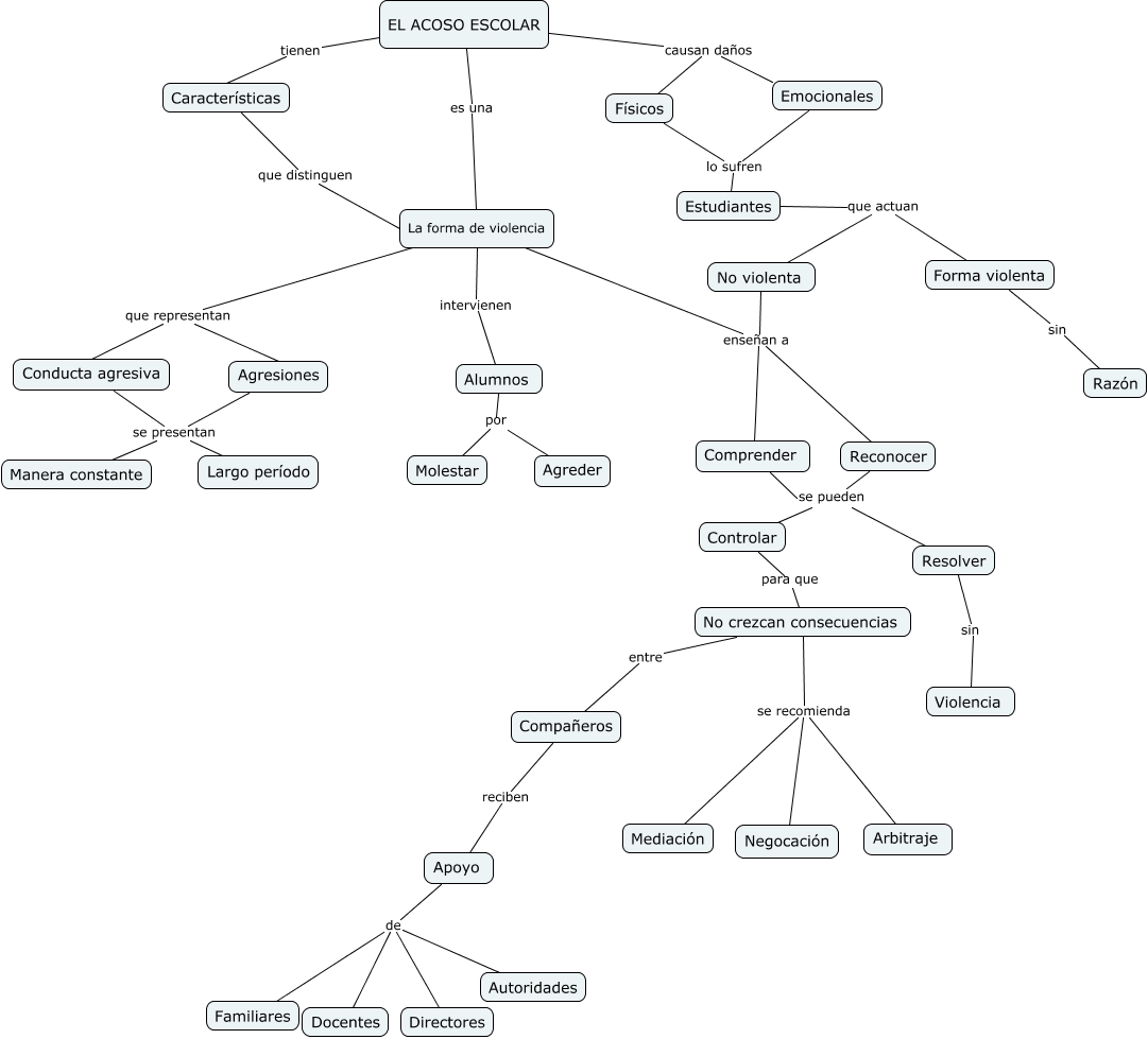 Este Cmap, tiene información relacionada con: ODI ADA 3, La forma de violencia que representan Agresiones, Comprender se pueden Resolver, No crezcan consecuencias se recomienda Mediación, Alumnos por Agreder, Apoyo de Familiares, No violenta enseñan a Comprender, Forma violenta sin Razón, Reconocer se pueden Resolver, Conducta agresiva se presentan Manera constante, EL ACOSO ESCOLAR tienen Características, Compañeros reciben Apoyo, EL ACOSO ESCOLAR es una La forma de violencia, Agresiones se presentan Largo período, Características que distinguen La forma de violencia, Resolver sin Violencia, Comprender se pueden Controlar, Apoyo de Directores, Controlar para que No crezcan consecuencias, Emocionales lo sufren Estudiantes, Apoyo de Autoridades