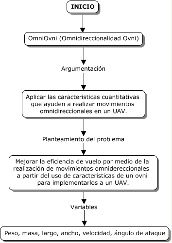 Este Cmap, tiene información relacionada con: DiagramaInicioDeMetodologia, OmniOvni (Omnidireccionalidad Ovni) Argumentación Aplicar las caracteristicas cuantitativas que ayuden a realizar movimientos omnidireccionales en un UAV., Mejorar la eficiencia de vuelo por medio de la realización de movimientos omnidereccionales a partir del uso de caracteristicas de un ovni para implementarlos a un UAV. Variables Peso, masa, largo, ancho, velocidad, ángulo de ataque, Aplicar las caracteristicas cuantitativas que ayuden a realizar movimientos omnidireccionales en un UAV. Planteamiento del problema Mejorar la eficiencia de vuelo por medio de la realización de movimientos omnidereccionales a partir del uso de caracteristicas de un ovni para implementarlos a un UAV., INICIO ???? OmniOvni (Omnidireccionalidad Ovni)