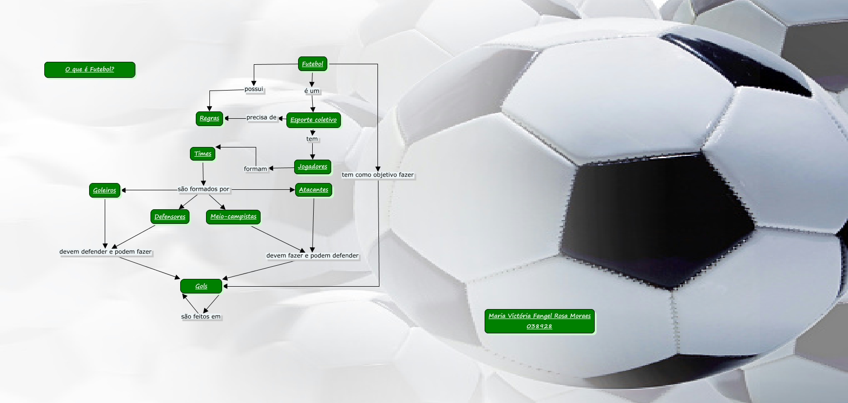 Esse mapa conceitual, produzido no IHMC CmapTools, tem a informação relacionada a: FutebolMaria, Atacantes devem fazer e podem defender Gols, Meio-campistas devem fazer e podem defender Gols, Defensores devem defender e podem fazer Gols, Esporte coletivo precisa de Regras, Esporte coletivo tem Jogadores, Jogadores formam Times, Times são formados por Goleiros, Times são formados por Defensores, Futebol possui Regras, Times são formados por Meio-campistas, Times são formados por Atacantes, Futebol tem como objetivo fazer Gols, Futebol é um Esporte coletivo, Goleiros devem defender e podem fazer Gols