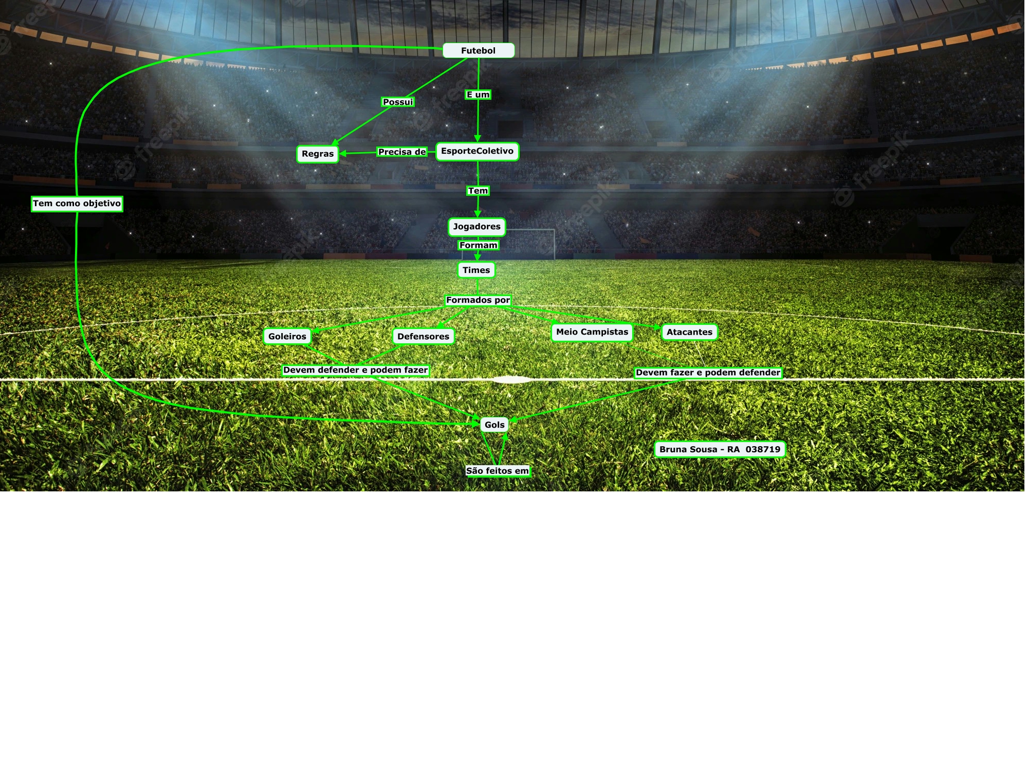 Esse mapa conceitual, produzido no IHMC CmapTools, tem a informação relacionada a: Futebol - Bruna Sousa, Futebol Tem como objetivo Gols, Jogadores Formam Times, Times Formados por Goleiros, Futebol E um EsporteColetivo, Meio Campistas Devem fazer e podem defender Gols, EsporteColetivo Precisa de Regras, EsporteColetivo Tem Jogadores, Atacantes Devem fazer e podem defender Gols, Defensores Devem defender e podem fazer Gols, Times Formados por Meio Campistas, Goleiros Devem defender e podem fazer Gols, Futebol Possui Regras, Times Formados por Defensores, Times Formados por Atacantes