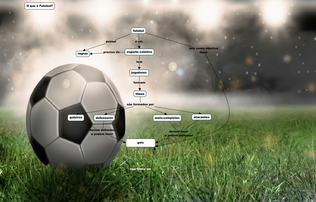 Esse mapa conceitual, produzido no IHMC CmapTools, tem a informação relacionada a: FUTEBOL Aisha Karina Santos Silva RA038494, jogadores formam times, esporte coletivo tem jogadores, futebol é um esporte coletivo, times sâo formados por goleiros, goleiros devem defender e podem fazer gols, times sâo formados por meio-campistas, times sâo formados por atacantes, futebol possui regras, times sâo formados por defensores, atacantes devem fazer e podem defender gols, futebol tem como objetivo fazer gols, defensores devem defender e podem fazer gols, esporte coletivo precisa de regras, meio-campistas devem fazer e podem defender gols
