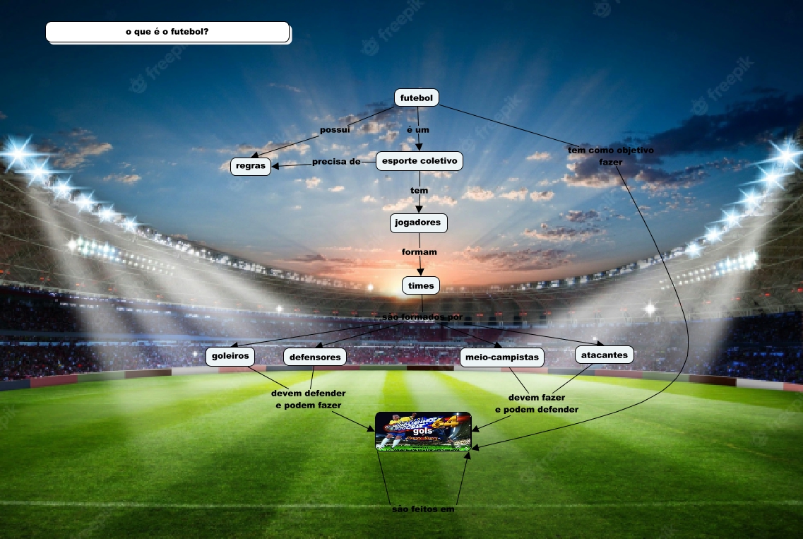Esse mapa conceitual, produzido no IHMC CmapTools, tem a informação relacionada a: Ana Flávia RA 0386622, futebol é um esporte coletivo, jogadores formam times, defensores devem defender e podem fazer gols, futebol possui regras, times sâo formados por goleiros, times sâo formados por atacantes, esporte coletivo tem jogadores, times sâo formados por meio-campistas, meio-campistas devem fazer e podem defender gols, futebol tem como objetivo fazer gols, times sâo formados por defensores, goleiros devem defender e podem fazer gols, esporte coletivo precisa de regras, atacantes devem fazer e podem defender gols