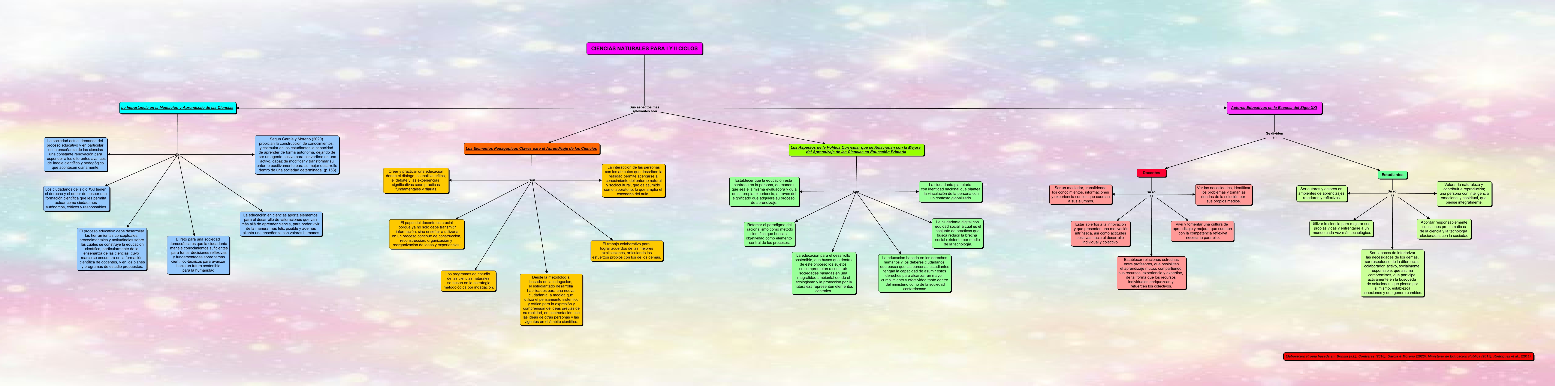 Este Cmap, tiene información relacionada con: Ciencias l, Estudiantes Su rol es Abordar responsablemente cuestiones problemáticas de la ciencia y la tecnología relacionadas con la sociedad., Los Aspectos de la Política Curricular que se Relacionan con la Mejora del Aprendizaje de las Ciencias en Educación Primaria Son La educación para el desarrollo sostenible, que busca que dentro de este proceso los sujetos se comprometan a construir sociedades basadas en una integralidad ambiental donde el ecologismo y la protección por la naturaleza representen elementos centrales., La Importancia en la Mediación y Aprendizaje de las Ciencias Es Los ciudadanos del siglo XXI tienen el derecho y el deber de poseer una formación científica que les permita actuar como ciudadanos autónomos, críticos y responsables., Actores Educativos en la Escuela del Siglo XXI Se dividen en Docentes, Docentes Su rol es Ver las necesidades, identificar los problemas y tomar las riendas de la solución por sus propios medios., Los Elementos Pedagógicos Claves para el Aprendizaje de las Ciencias Son El trabajo colaborativo para lograr acuerdos de las mejores explicaciones, articulando los esfuerzos propios con los de los demás., Estudiantes Su rol es Ser capaces de interiorizar las necesidades de los demás, ser respetuoso de la diferencia, colaborador, activo, socialmente responsable, que asuma compromisos, que participe activamente en la búsqueda de soluciones, que piense por sí mismo, establezca conexiones y que genere cambios., Estudiantes Su rol es Ser autores y actores en ambientes de aprendizajes retadores y reflexivos., La Importancia en la Mediación y Aprendizaje de las Ciencias Es La educación en ciencias aporta elementos para el desarrollo de valoraciones que van más allá de aprender ciencia, para poder vivir de la manera más feliz posible y además alienta una enseñanza con valores humanos., Los Elementos Pedagógicos Claves para el Aprendizaje de las Ciencias Son Desde la metodología basada en la indagación, el estudiantado desarrolla habilidades para una nueva ciudadanía, a medida que utiliza el pensamiento sistémico y crítico para la expresión y comprensión de ideas previas de su realidad, en contrastación con las ideas de otras personas y las vigentes en el ámbito científico., Docentes Su rol es Estar abiertos a la innovación y que presenten una motivación intrínseca, así como actitudes positivas hacia el desarrollo individual y colectivo., Los Aspectos de la Política Curricular que se Relacionan con la Mejora del Aprendizaje de las Ciencias en Educación Primaria Son La ciudadanía digital con equidad social la cual es el conjunto de prácticas que busca reducir la brecha social existente por medio de la tecnología., Los Aspectos de la Política Curricular que se Relacionan con la Mejora del Aprendizaje de las Ciencias en Educación Primaria Son Retomar el paradigma del racionalismo como método científico que busca la objetividad como elemento central de los procesos., Los Aspectos de la Política Curricular que se Relacionan con la Mejora del Aprendizaje de las Ciencias en Educación Primaria Son La ciudadanía planetaria con identidad nacional que plantea la vinculación de la persona con un contexto globalizado., CIENCIAS NATURALES PARA l Y ll CICLOS Sus aspectos más relevantes son Los Aspectos de la Política Curricular que se Relacionan con la Mejora del Aprendizaje de las Ciencias en Educación Primaria, Docentes Su rol es Vivir y fomentar una cultura de aprendizaje y mejora, que cuenten con la competencia reflexiva necesaria para ello., CIENCIAS NATURALES PARA l Y ll CICLOS Sus aspectos más relevantes son La Importancia en la Mediación y Aprendizaje de las Ciencias, La Importancia en la Mediación y Aprendizaje de las Ciencias Es El proceso educativo debe desarrollar las herramientas conceptuales, procedimentales y actitudinales sobre las cuales se construye la educación científica, particularmente de la enseñanza de las ciencias, cuyo marco se encuentra en la formación científica de docentes, y en los planes y programas de estudio propuestos., La Importancia en la Mediación y Aprendizaje de las Ciencias Es El reto para una sociedad democrática es que la ciudadanía maneje conocimientos suficientes para tomar decisiones reflexivas y fundamentadas sobre temas científico-técnicos para avanzar hacia un futuro sostenible para la humanidad., CIENCIAS NATURALES PARA l Y ll CICLOS Sus aspectos más relevantes son Actores Educativos en la Escuela del Siglo XXI