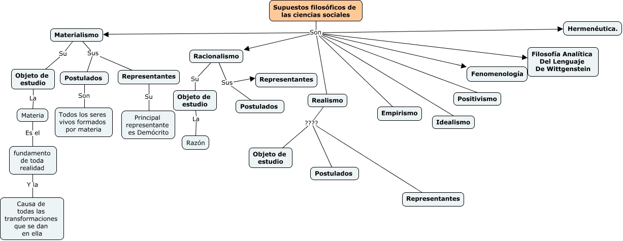 Este Cmap, tiene información relacionada con: Supuestos filosóficos, Realismo ???? Objeto de estudio, Racionalismo Sus Postulados, Racionalismo Sus Representantes, Realismo ???? Representantes, Supuestos filosóficos de las ciencias sociales Son Materialismo, Supuestos filosóficos de las ciencias sociales Son Positivismo, fundamento de toda realidad Y la Causa de todas las transformaciones que se dan en ella, Racionalismo Su Objeto de estudio, Objeto de estudio La Razón, Representantes Su Principal representante es Demócrito, Supuestos filosóficos de las ciencias sociales Son Racionalismo, Realismo ???? Postulados, Supuestos filosóficos de las ciencias sociales Son Fenomenología, Supuestos filosóficos de las ciencias sociales Son Realismo, Supuestos filosóficos de las ciencias sociales Son Empirismo, Supuestos filosóficos de las ciencias sociales Son Filosofía Analítica Del Lenguaje De Wittgenstein, Objeto de estudio La Materia, Materialismo Sus Postulados, Postulados Son Todos los seres vivos formados por materia, Supuestos filosóficos de las ciencias sociales Son Idealismo