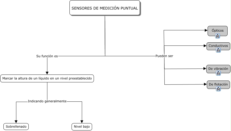 Este Cmap, tiene información relacionada con: 2.1 Sensores de medición puntual, SENSORES DE MEDICIÓN PUNTUAL Pueden ser De vibración, SENSORES DE MEDICIÓN PUNTUAL Pueden ser Ópticos, SENSORES DE MEDICIÓN PUNTUAL Pueden ser Conductivos, SENSORES DE MEDICIÓN PUNTUAL Pueden ser De flotación, Marcar la altura de un líquido en un nivel preestablecido Indicando generalmente Nivel bajo, Marcar la altura de un líquido en un nivel preestablecido Indicando generalmente Sobrellenado, SENSORES DE MEDICIÓN PUNTUAL Su función es Marcar la altura de un líquido en un nivel preestablecido