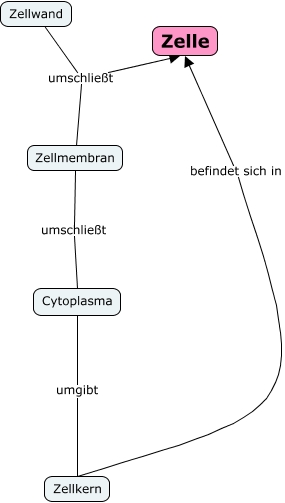 Dieses mit IHMC CmapTools erstellte CMap hat Informationen bezüglich: EF4 Zelle V0, Zellmembran umschließt Zelle, Cytoplasma umgibt Zellkern, Zellwand umschließt Zelle, Zellkern befindet sich in Zelle, Zellmembran umschließt Cytoplasma