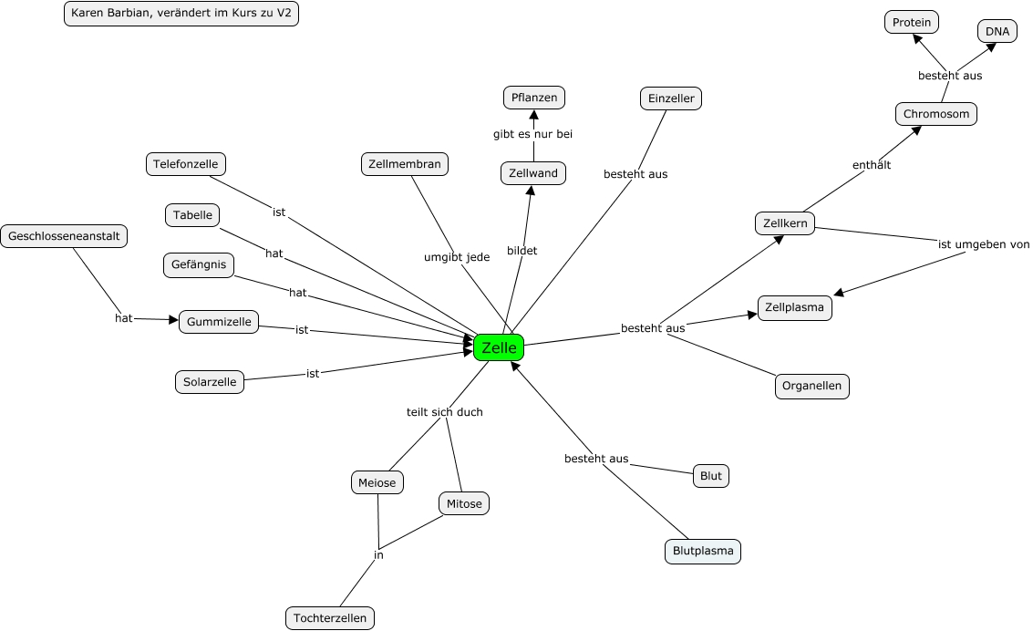 Dieses mit IHMC CmapTools erstellte CMap hat Informationen bezüglich: Zelle 7.9.13 V2.cmap, Gefängnis hat Zelle, Zelle besteht aus Zellkern, Zelle bildet Zellwand, Mitose in Tochterzellen, Blut besteht aus Zelle, Geschlosseneanstalt hat Gummizelle, Telefonzelle ist Zelle, Solarzelle ist Zelle, Blut besteht aus Blutplasma, Zellwand gibt es nur bei Pflanzen, Zellmembran umgibt jede Zelle, Tabelle hat Zelle, Zelle teilt sich duch Mitose, Zelle besteht aus Organellen, Chromosom besteht aus DNA, Zelle teilt sich duch Meiose, Zellkern ist umgeben von Zellplasma, Chromosom besteht aus Protein, Gummizelle ist Zelle, Meiose in Tochterzellen