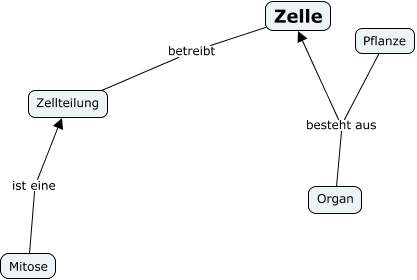 Dieses mit IHMC CmapTools erstellte CMap hat Informationen bezüglich: Zelle 5 GK4 V0 12_08_27, Mitose ist eine Zellteilung, Pflanze besteht aus Zelle, Zelle betreibt Zellteilung, Organ besteht aus Zelle