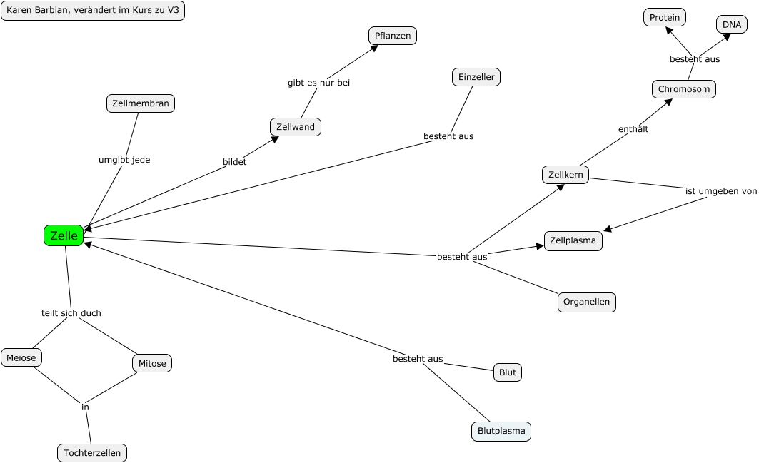 Dieses mit IHMC CmapTools erstellte CMap hat Informationen bezüglich: Zelle EF1 18.9.13 V3, Einzeller besteht aus Zelle, Zelle besteht aus Zellkern, Zelle besteht aus Zellplasma, Zellmembran umgibt jede Zelle, Meiose in Tochterzellen, Zellkern enthält Chromosom, Blut besteht aus Blutplasma, Zelle bildet Zellwand, Zellwand gibt es nur bei Pflanzen, Zelle teilt sich duch Meiose, Chromosom besteht aus DNA, Mitose in Tochterzellen, Blut besteht aus Zelle, Zellkern ist umgeben von Zellplasma, Zelle besteht aus Organellen, Chromosom besteht aus Protein, Zelle teilt sich duch Mitose