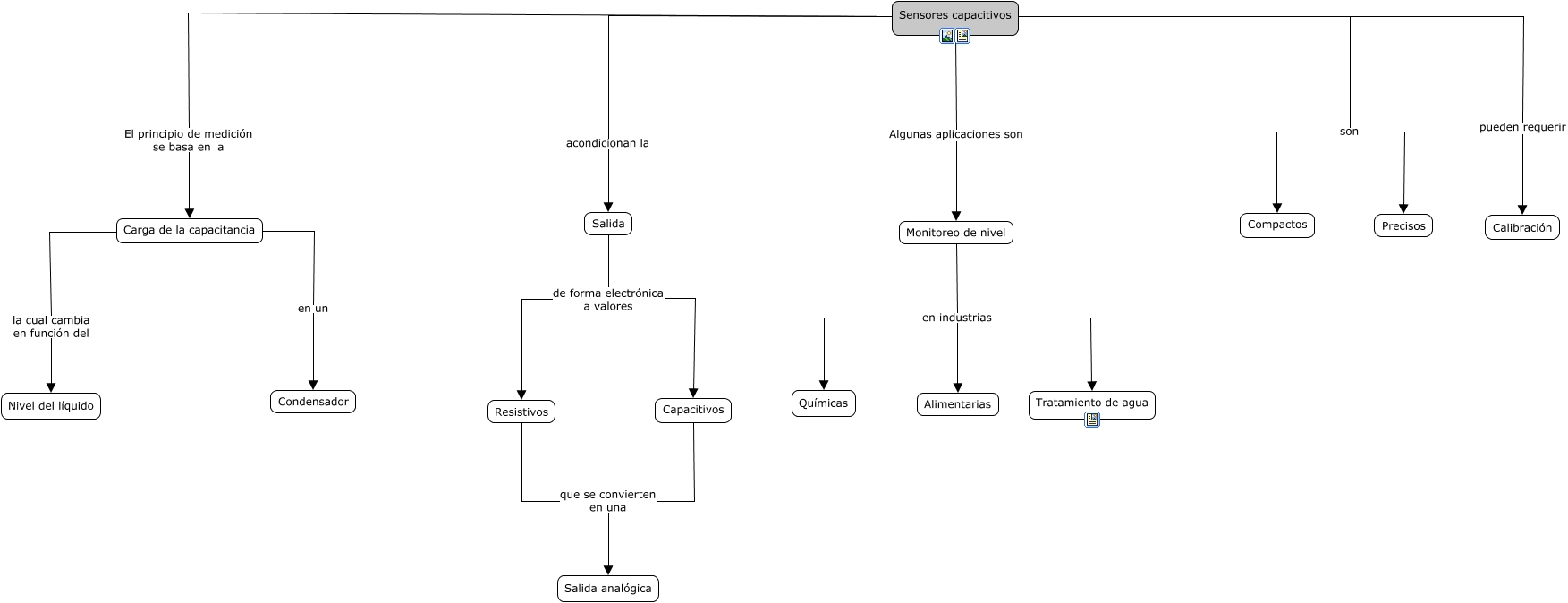 Este Cmap, tiene información relacionada con: 2.2.1 Sensores capacitivos, Monitoreo de nivel en industrias Tratamiento de agua, Carga de la capacitancia en un Condensador, Resistivos que se convierten en una Salida analógica, Sensores capacitivos Algunas aplicaciones son Monitoreo de nivel, Sensores capacitivos El principio de medición se basa en la Carga de la capacitancia, Capacitivos que se convierten en una Salida analógica, Carga de la capacitancia la cual cambia en función del Nivel del líquido, Monitoreo de nivel en industrias Químicas, Sensores capacitivos son Compactos, Salida de forma electrónica a valores Resistivos, Sensores capacitivos pueden requerir Calibración, Sensores capacitivos son Precisos, Salida de forma electrónica a valores Capacitivos, Monitoreo de nivel en industrias Alimentarias, Sensores capacitivos acondicionan la Salida