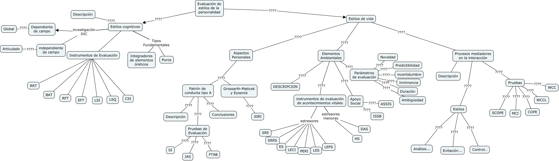 Este Cmap, tiene información relacionada con: evpers, Procesos mediadores en la interacción ???? Estilos, Parámetros de evaluación ???? Predictibilidad, Grossarth-Maticek y Eysenck ???? SIRI, Pruebas ???? SCOPE, Estilos ???? Control.., instrumentos de evaluación de acontecimientos vitales estresores PERI, instrumentos de evaluación de acontecimientos vitales estresores menores HS, Estilos cognitivos investigación DIC independiente de campo, Estilos cognitivos ???? BAT, Estilos cognitivos ???? LSQ, Estilos cognitivos investigación DIC Dependiente de campo, instrumentos de evaluación de acontecimientos vitales estresores menores HS, Estilos de vida ???? Procesos mediadores en la interacción, Patrón de conducta tipo A ???? Conclusiones, Estilos cognitivos investigación DIC independiente de campo, instrumentos de evaluación de acontecimientos vitales estresores LECI, Estilos cognitivos Tipos Fundamentales Integradores de elementos óreticos, Dependiente de campo ???? Global, Pruebas de Evaluación ???? FTAB, Patrón de conducta tipo A ???? Pruebas de Evaluación