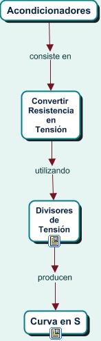 Este Cmap, tiene información relacionada con: Acondicionadores, Acondicionadores consiste en Convertir Resistencia en Tensión, Convertir Resistencia en Tensión utilizando Divisores de Tensión, Divisores de Tensión producen Curva en S