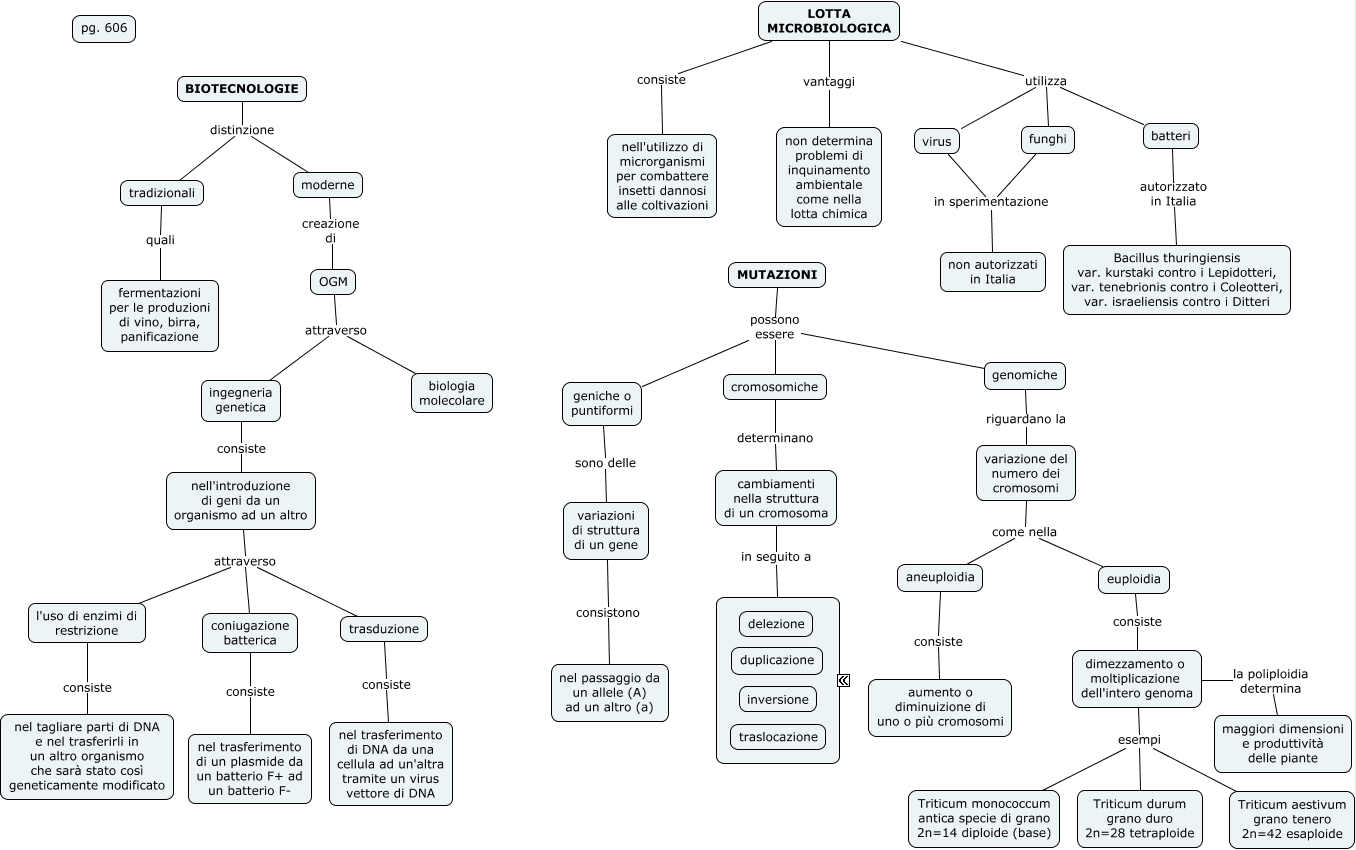 Questa Cmap, creata con IHMC CmapTools, contiene informazioni relative a: Cambiamenti corredo cromosomico, coniugazione batterica consiste nel trasferimento di un plasmide da un batterio F+ ad un batterio F-, funghi in sperimentazione non autorizzati in Italia, BIOTECNOLOGIE distinzione moderne, nell'introduzione di geni da un organismo ad un altro attraverso trasduzione, LOTTA MICROBIOLOGICA consiste nell'utilizzo di microrganismi per combattere insetti dannosi alle coltivazioni, nell'introduzione di geni da un organismo ad un altro attraverso l'uso di enzimi di restrizione, cambiamenti nella struttura di un cromosoma in seguito a, geniche o puntiformi sono delle variazioni di struttura di un gene, variazione del numero dei cromosomi come nella euploidia, aneuploidia consiste aumento o diminuizione di uno o più cromosomi, MUTAZIONI possono essere geniche o puntiformi, ingegneria genetica consiste nell'introduzione di geni da un organismo ad un altro, variazione del numero dei cromosomi come nella aneuploidia, LOTTA MICROBIOLOGICA utilizza funghi, euploidia consiste dimezzamento o moltiplicazione dell'intero genoma, genomiche possono essere geniche o puntiformi, virus in sperimentazione non autorizzati in Italia, genomiche possono essere cromosomiche, dimezzamento o moltiplicazione dell'intero genoma esempi Triticum monococcum antica specie di grano 2n=14 diploide (base), BIOTECNOLOGIE distinzione tradizionali