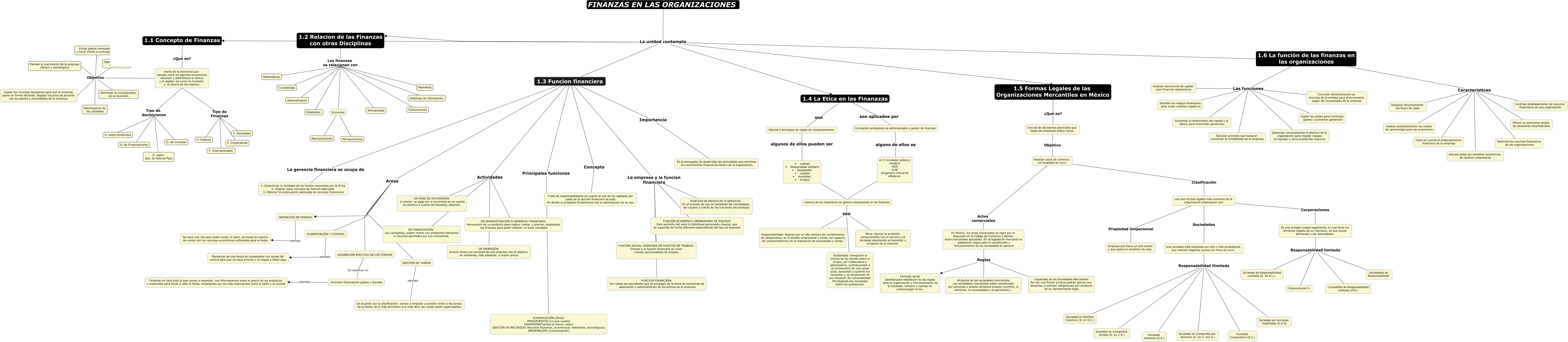 Este Cmap, tiene información relacionada con: Mapa conceptual finanzas 22, En México, los actos comerciales se rigen por lo dispuesto en el Código de Comercio y demás leyes mercantiles aplicables. En la legislación mercantil se establecen reglas para la constitución y funcionamiento de las sociedades en general Reglas Capacidad de las Sociedades Mercantiles Por ser una ficción jurídica podrán ejercer sus derechos y contraer obligaciones por conducto de su representante legal., 1.3 Funcion financiera Areas GESTIÓN DE TAREAS, Rama de la economía que estudia como los agentes economicos obtienen y administran el dinero y el capital, así como la inversión y el ahorro de los mismos. Tipo de Finanzas F. Internacionales, Rama de la economía que estudia como los agentes economicos obtienen y administran el dinero y el capital, así como la inversión y el ahorro de los mismos. Tipo de decisiciones D. de Financiamiento, En México, los actos comerciales se rigen por lo dispuesto en el Código de Comercio y demás leyes mercantiles aplicables. En la legislación mercantil se establecen reglas para la constitución y funcionamiento de las sociedades en general Reglas Contrato social Libertad para establecer los las reglas para la organización y funcionamiento de la sociedad, siempre y cuando no contravengan la ley., Rama de la economía que estudia como los agentes economicos obtienen y administran el dinero y el capital, así como la inversión y el ahorro de los mismos. Tipo de decisiciones D. de inversion, 1.6 La función de las finanzas en las organizaciones Caracteristicas Optimiza los recursos financieros de las organizaciones, Inversión financiación gastos y liquidez ejemplo Teniendo en lista todo lo que vamos a necesitar, nos informaremos sobre el precio de los productos y materiales para llevar a cabo la fiesta, empezando por los más importantes como el salón y la comida, Rama de la economía que estudia como los agentes economicos obtienen y administran el dinero y el capital, así como la inversión y el ahorro de los mismos. Objetivo Evitas gastos innecesarios y hacer frente a contingencias, Las tres formas legales más comunes de la organización empresarial son: Propiedad Unipersonal Empresa que tiene un solo dueño y que opera en beneficio de este., 1.3 Funcion financiera Actividades DE INVERSIÓN. Invertir dinero en acciones de una empresa con el objetivo de venderlas, más adelante, a mayor precio, FINANZAS EN LAS ORGANIZACIONES La unidad contempla 1.5 Formas Legales de las Organizaciones Mercantiles en México, 1.6 La función de las finanzas en las organizaciones Caracteristicas Gestiona eficientemente los flujos de cajas, Una sociedad está integrada por dos o más propietarios que realizan negocios juntos con fines de lucro. Responsabilidad ilimitada Sociedad en Comandita por Acciones (S. en C. por A.), 1.6 La función de las finanzas en las organizaciones Caracteristicas Controla detalladamente los recursos financieros de una organización, Economía Macroeconomia, 1.3 Funcion financiera Principales funciones PLANIFICACIÓN (Éxito) PRESUPUESTOS (Lo que cuesta) INVERSIÓN(Fuentes al menor costo) GESTIÓN DE RECURSOS( Recursos humanos, económicos, materiales, tecnológicos) INFORMACIÓN (Comunicación), 1.2 Relacion de las Finanzas con otras Disciplinas Las finanzas se relacionan con Marketing, 1.6 La función de las finanzas en las organizaciones Caracteristicas Analiza constantemente los costes de oportunidad para las inversiones, 1.6 La función de las finanzas en las organizaciones Las funciones Gestionar correctamente el efectivo de la organización para impedir riesgos de liquidez y otros problemas mayores
