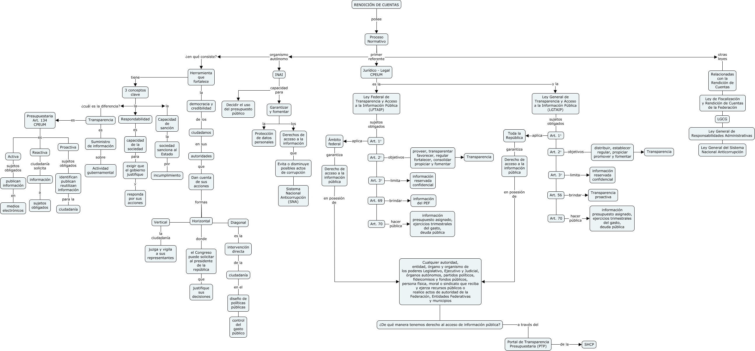 Este Cmap, tiene información relacionada con: La interpretación del ejercicio de la transparencia, Proceso Normativo primer referente Jurídico - Legal CPEUM, Ley General de Transparencia y Acceso a la Información Pública (LGTAIP) sujetos obligados Art. 70, Toda la República garantiza Derecho de acceso a la información pública, Vertical la ciudadanía juzga y vigila a sus representantes, sociedad sanciona al Estado por incumplimiento, intervención directa de la ciudadanía, Ley Federal de Transparencia y Acceso a la Información Pública (LFTAIP) sujetos obligados Art. 70, Art. 1° aplica Ámbito federal, Proceso Normativo otras leyes Ley General del Sistema Nacional Anticorrupción, capacidad de la sociedad para exigir que el gobierno justifique, autoridades que Dan cuenta de sus acciones, Art. 3° limita información reservada confidencial, Proceso Normativo organismo autónomo INAI, 3 conceptos clave la Capacidad de sanción, el Congreso puede solicitar al presidente de la república que justifique sus decisiones, exigir que el gobierno justifique y responda por sus acciones, Jurídico - Legal CPEUM es la Ley Federal de Transparencia y Acceso a la Información Pública (LFTAIP), Transparencia es Presupuestaria Art. 134 CPEUM, Art. 69 brindar información del PEF, Cualquier autoridad, entidad, órgano y organismo de los poderes Legislativo, Ejecutivo y Judicial, órganos autónomos, partidos políticos, fideicomisos y fondos públicos, persona física, moral o sindicato que reciba y ejerza recursos públicos o realice actos de autoridad de la Federación, Entidades Federativas y municipios ???? ¿De qué manera tenemos derecho al acceso de información pública?