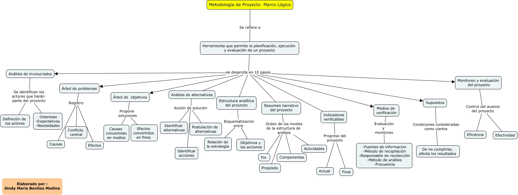Este Cmap, tiene información relacionada con: Marco Logico, Medios de verificación Evaluación y monitoreo -Fuentes de informacion -Método de recopilación -Responsable de recolección -Método de análisis -Frecuencia, Herramienta que permite la planificación, ejecución y evaluación de un proyecto se desarolla en 10 pasos Indicadores verificables, Estructura analítica del proyecto Esquematización entre Objetivos y las acciones, Árbol de objetivos Propone soluciones Causas convertidas en medios, Árbol de objetivos Propone soluciones Efectos convertidos en fines, Herramienta que permite la planificación, ejecución y evaluación de un proyecto se desarolla en 10 pasos Medios de verificación, Resumen narrativo del proyecto Orden de los niveles de la estructura de análisis Propósito, Análisis de involucrados Se identifican los actores que harán parte del proyecto -Intereses -Expectativas -Necesidades, Resumen narrativo del proyecto Orden de los niveles de la estructura de análisis Actividades, Estructura analítica del proyecto Esquematización entre Relación de la estrategía, Herramienta que permite la planificación, ejecución y evaluación de un proyecto se desarolla en 10 pasos Árbol de objetivos, Análisis de alternativas Acción de solución Identificar acciones, Árbol de problemas Registro Causas, Resumen narrativo del proyecto Orden de los niveles de la estructura de análisis Componentes, Indicadores verificables Progreso del proyecto Actual, Herramienta que permite la planificación, ejecución y evaluación de un proyecto se desarolla en 10 pasos Supuestos, Herramienta que permite la planificación, ejecución y evaluación de un proyecto se desarolla en 10 pasos Análisis de alternativas, Monitoreo y evaluación del proyecto Control del avance del proyecto Eficiencia, Resumen narrativo del proyecto Orden de los niveles de la estructura de análisis Fin, Árbol de problemas Registro Conflicto central