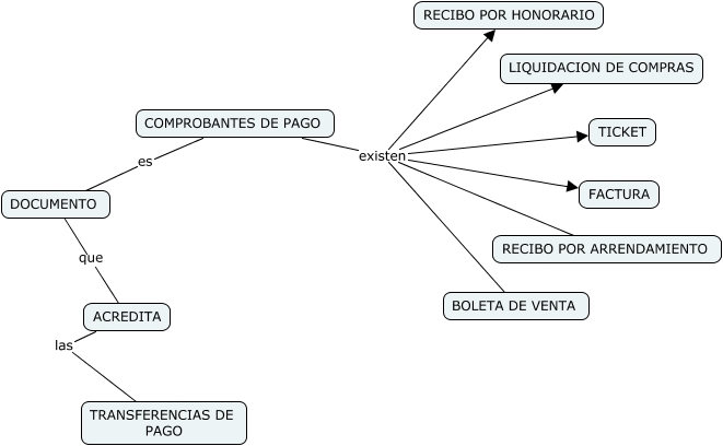 Este Cmap, tiene información relacionada con: COMPROBANTES DE PAGO_ LESLIE CACHA, COMPROBANTES DE PAGO es DOCUMENTO, DOCUMENTO que ACREDITA, COMPROBANTES DE PAGO existen RECIBO POR HONORARIO, COMPROBANTES DE PAGO existen BOLETA DE VENTA, ACREDITA las TRANSFERENCIAS DE PAGO, COMPROBANTES DE PAGO existen FACTURA, COMPROBANTES DE PAGO existen TICKET, COMPROBANTES DE PAGO existen LIQUIDACION DE COMPRAS, COMPROBANTES DE PAGO existen RECIBO POR ARRENDAMIENTO