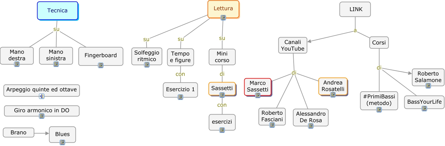 Questa Cmap, creata con IHMC CmapTools, contiene informazioni relative a: Teoria basso elettrico, Tecnica su Mano sinistra, Tecnica su Mano destra, Canali YouTube di Alessandro De Rosa, Lettura su Mini corso, Sassetti con esercizi, LINK a Corsi, Tempo e figure con Esercizio 1, Canali YouTube di Roberto Fasciani, Corsi di BassYourLife, Corsi di #PrimiBassi (metodo), Lettura su Tempo e figure, Brano Blues, LINK a Canali YouTube, Mini corso di Sassetti, Lettura su Solfeggio ritmico, Tecnica su Fingerboard, Canali YouTube di Andrea Rosatelli, Corsi di Roberto Salamone, Canali YouTube di Marco Sassetti
