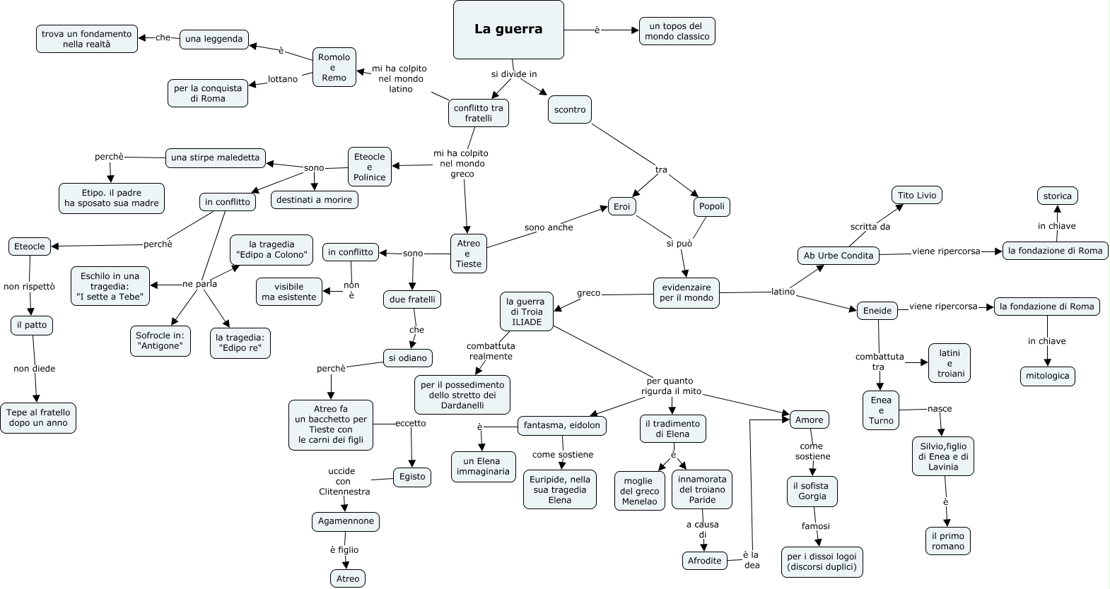 Questa Cmap, creata con IHMC CmapTools, contiene informazioni relative a: La Guerra latino e greco, due fratelli che si odiano, Eteocle non rispettò il patto, Eteocle e Polinice sono una stirpe maledetta, una stirpe maledetta perchè Etipo. il padre ha sposato sua madre, in conflitto ne parla la tragedia "Edipo a Colono", Ab Urbe Condita scritta da Tito Livio, Romolo e Remo lottano per la conquista di Roma, la guerra di Troia ILIADE combattuta realmente per il possedimento dello stretto dei Dardanelli, evidenzaire per il mondo greco la guerra di Troia ILIADE, Eneide viene ripercorsa la fondazione di Roma, Eteocle e Polinice sono in conflitto, Popoli si può evidenzaire per il mondo, La guerra si divide in scontro, Eteocle e Polinice sono destinati a morire, Atreo e Tieste sono due fratelli, Amore come sostiene il sofista Gorgia, il tradimento di Elena è innamorata del troiano Paride, una leggenda che trova un fondamento nella realtà, si odiano perchè Atreo fa un bacchetto per Tieste con le carni dei figli, fantasma, eidolon come sostiene Euripide, nella sua tragedia Elena