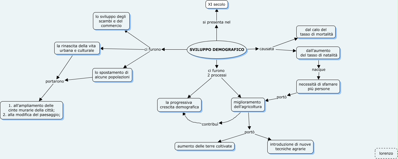 Questa Cmap, creata con IHMC CmapTools, contiene informazioni relative a: sviluppo demografico, miglioramento dell'agricoltura contribuì la progressiva crescita demografica, SVILUPPO DEMOGRAFICO ci furono 2 processi la progressiva crescita demografica, la rinascita della vita urbana e culturale portarono 1. all'ampliamento delle cinte murarie della città; 2. alla modifica del paesaggio;, lo spostamento di alcune popolazioni portarono 1. all'ampliamento delle cinte murarie della città; 2. alla modifica del paesaggio;, SVILUPPO DEMOGRAFICO ci furono 2 processi miglioramento dell'agricoltura, SVILUPPO DEMOGRAFICO ci furono la rinascita della vita urbana e culturale, SVILUPPO DEMOGRAFICO causata dal calo del tasso di mortalità, miglioramento dell'agricoltura portò aumento delle terre coltivate, SVILUPPO DEMOGRAFICO ci furono lo sviluppo degli scambi e del commercio, SVILUPPO DEMOGRAFICO ci furono lo spostamento di alcune popolazioni, SVILUPPO DEMOGRAFICO si presenta nel XI secolo, SVILUPPO DEMOGRAFICO causata dall'aumento del tasso di natalità, necessità di sfamare più persone portò miglioramento dell'agricoltura, miglioramento dell'agricoltura portò introduzione di nuove tecniche agrarie, dall'aumento del tasso di natalità nacque necessità di sfamare più persone