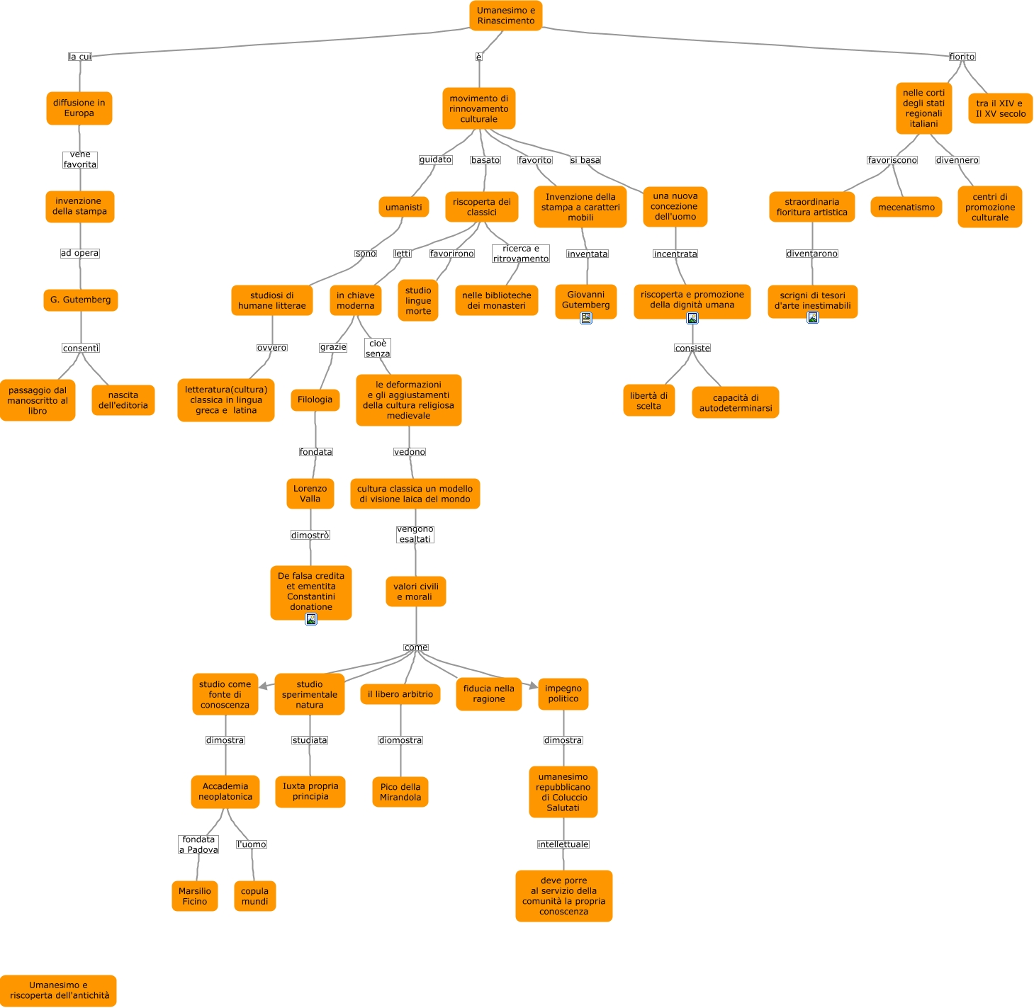 Questa Cmap, creata con IHMC CmapTools, contiene informazioni relative a: Umanesimo e Rinascimento, Invenzione della stampa a caratteri mobili inventata Giovanni Gutemberg, valori civili e morali come studio sperimentale natura, diffusione in Europa vene favorita invenzione della stampa, riscoperta dei classici letti in chiave moderna, riscoperta dei classici favorirono studio lingue morte, riscoperta e promozione della dignità umana consiste libertà di scelta, studio come fonte di conoscenza dimostra Accademia neoplatonica, Filologia fondata Lorenzo Valla, nelle corti degli stati regionali italiani divennero centri di promozione culturale, impegno politico dimostra umanesimo repubblicano di Coluccio Salutati, umanisti sono studiosi di humane litterae, movimento di rinnovamento culturale si basa una nuova concezione dell'uomo, valori civili e morali come impegno politico, valori civili e morali come il libero arbitrio, il libero arbitrio diomostra Pico della Mirandola, riscoperta e promozione della dignità umana consiste capacità di autodeterminarsi, valori civili e morali come fiducia nella ragione, G. Gutemberg consentì nascita dell'editoria, riscoperta dei classici ricerca e ritrovamento nelle biblioteche dei monasteri, in chiave moderna cioè senza le deformazioni e gli aggiustamenti della cultura religiosa medievale